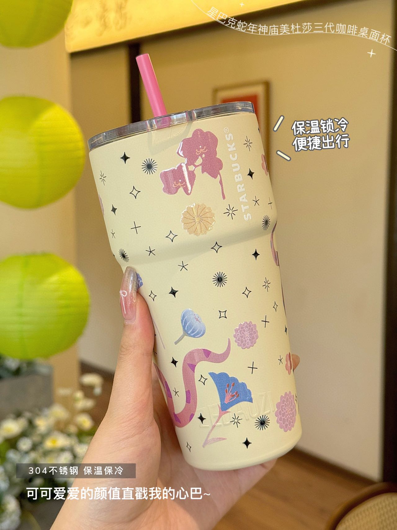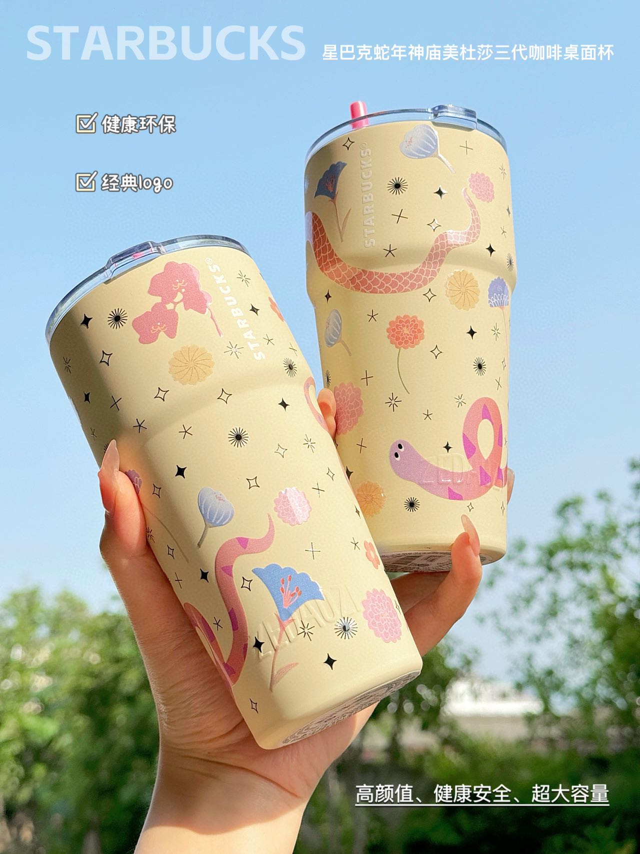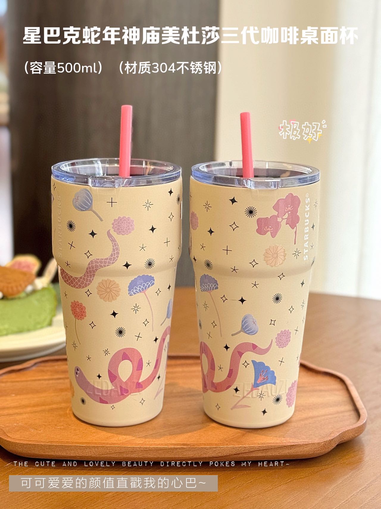 这个星巴克蛇年神庙美杜莎三代咖啡桌面杯你一定看!304 不锈钢的保温隔热,500 毫升的容量。米色磨砂杯身搭配亮面的印花,真的超好看!这摆在家里真的是太有氛围感了!新年送给自己一个快乐吧!