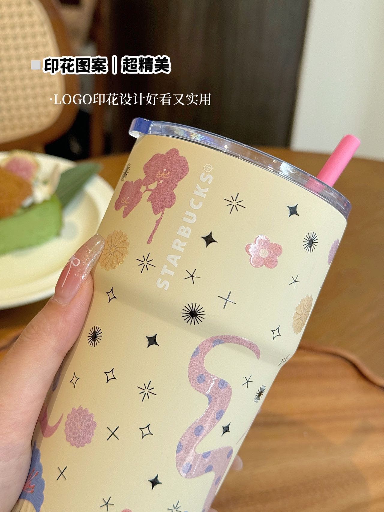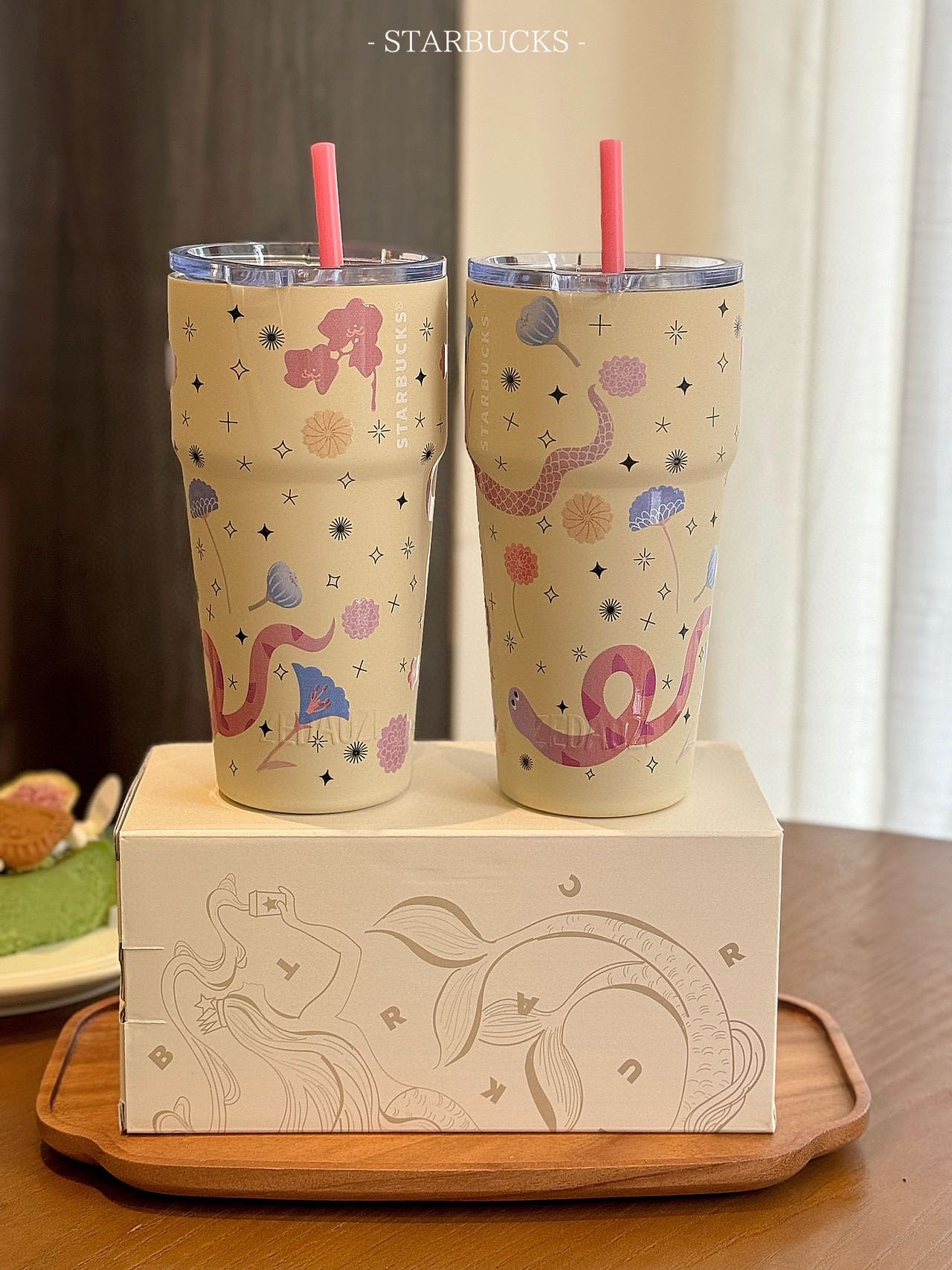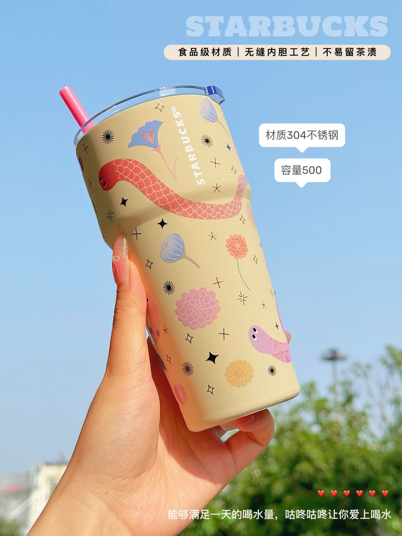 这个星巴克蛇年神庙美杜莎三代咖啡桌面杯你一定看!304 不锈钢的保温隔热,500 毫升的容量。米色磨砂杯身搭配亮面的印花,真的超好看!这摆在家里真的是太有氛围感了!新年送给自己一个快乐吧!