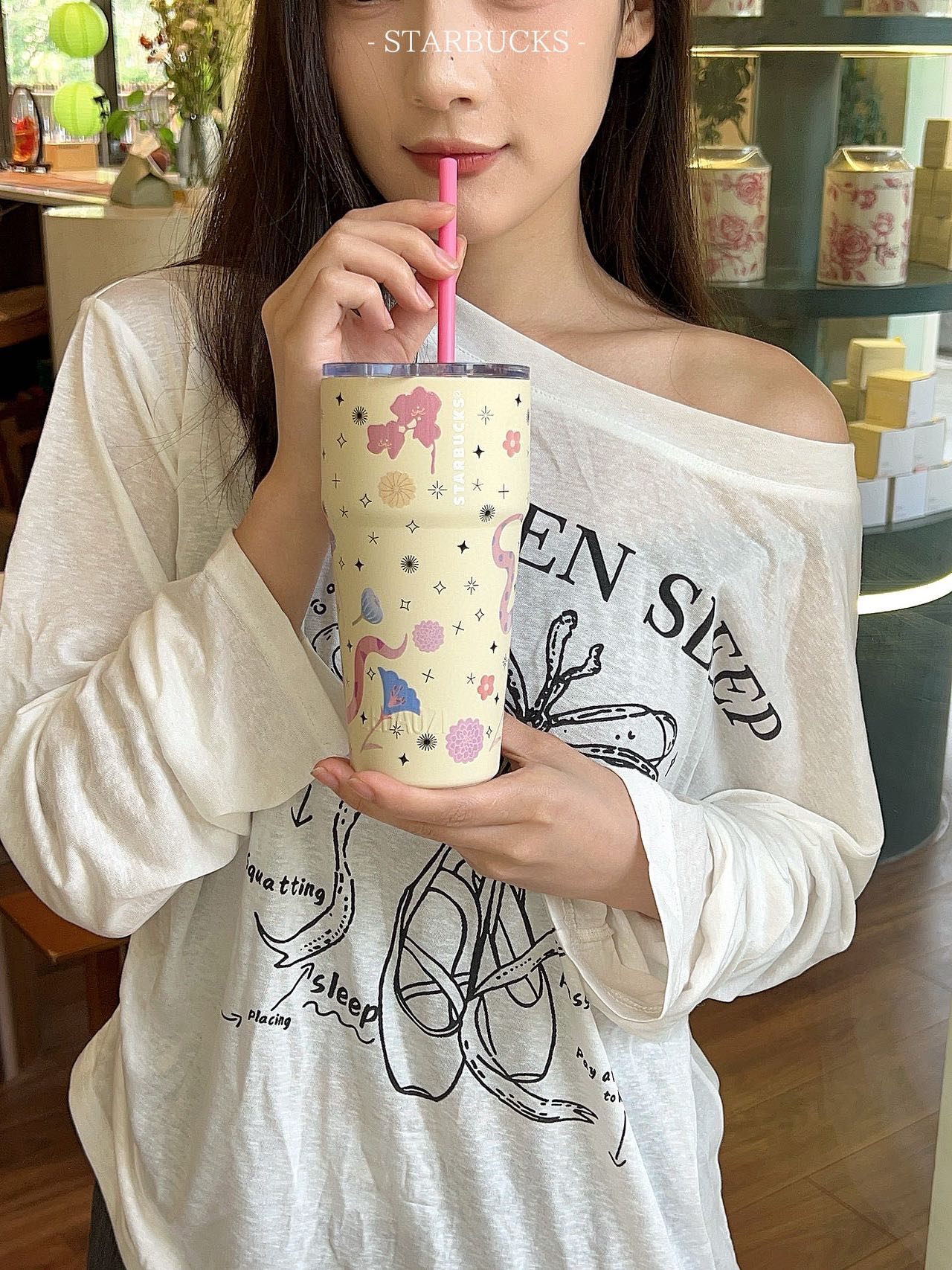 高颜值水杯,我的拍照好搭档 这款水杯绝对是镜头下的焦点 让我的照片瞬间提升格调,成为朋友圈的焦点! 米色与印花的结合,不仅彰显了个性,还让摄影作品更具生活气息! 无论是city walk还是室内派对,这款水杯都是我拍照的得力助手!