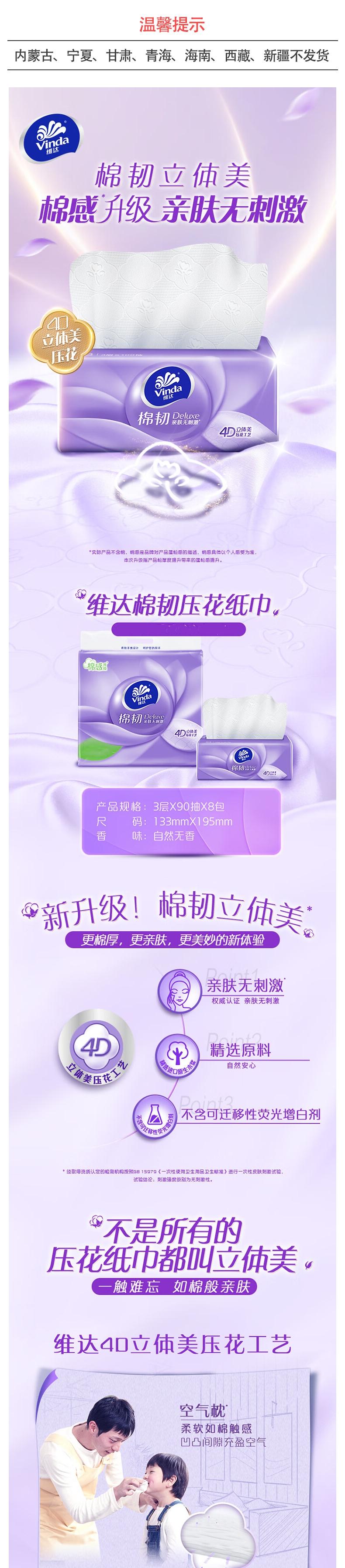 维达 棉韧抽纸3层90抽*8包 V2834-24-8B