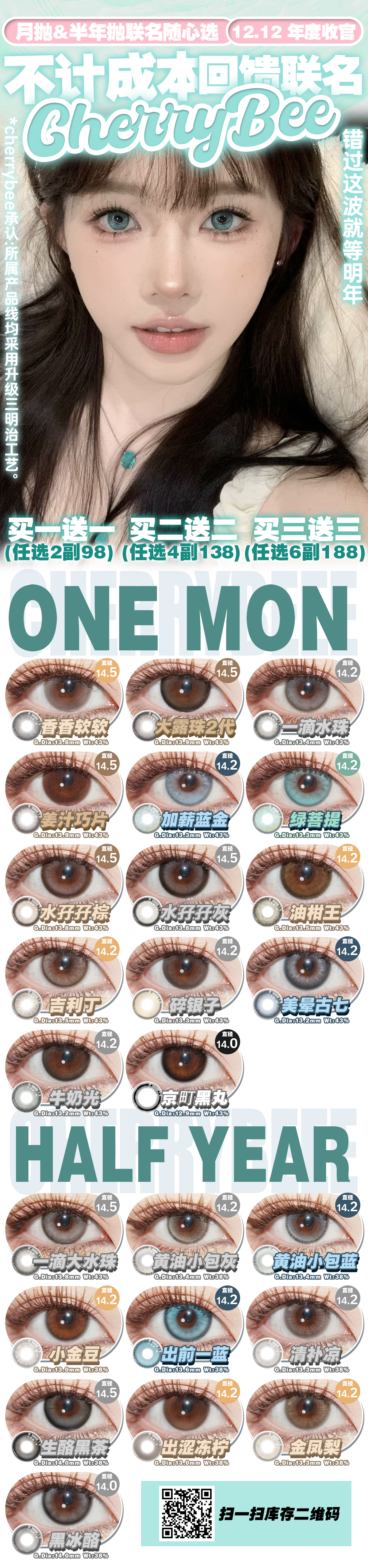 【限时活动】CHERRYBEE美瞳月抛&半年抛联名,2副98,4副138,6副188