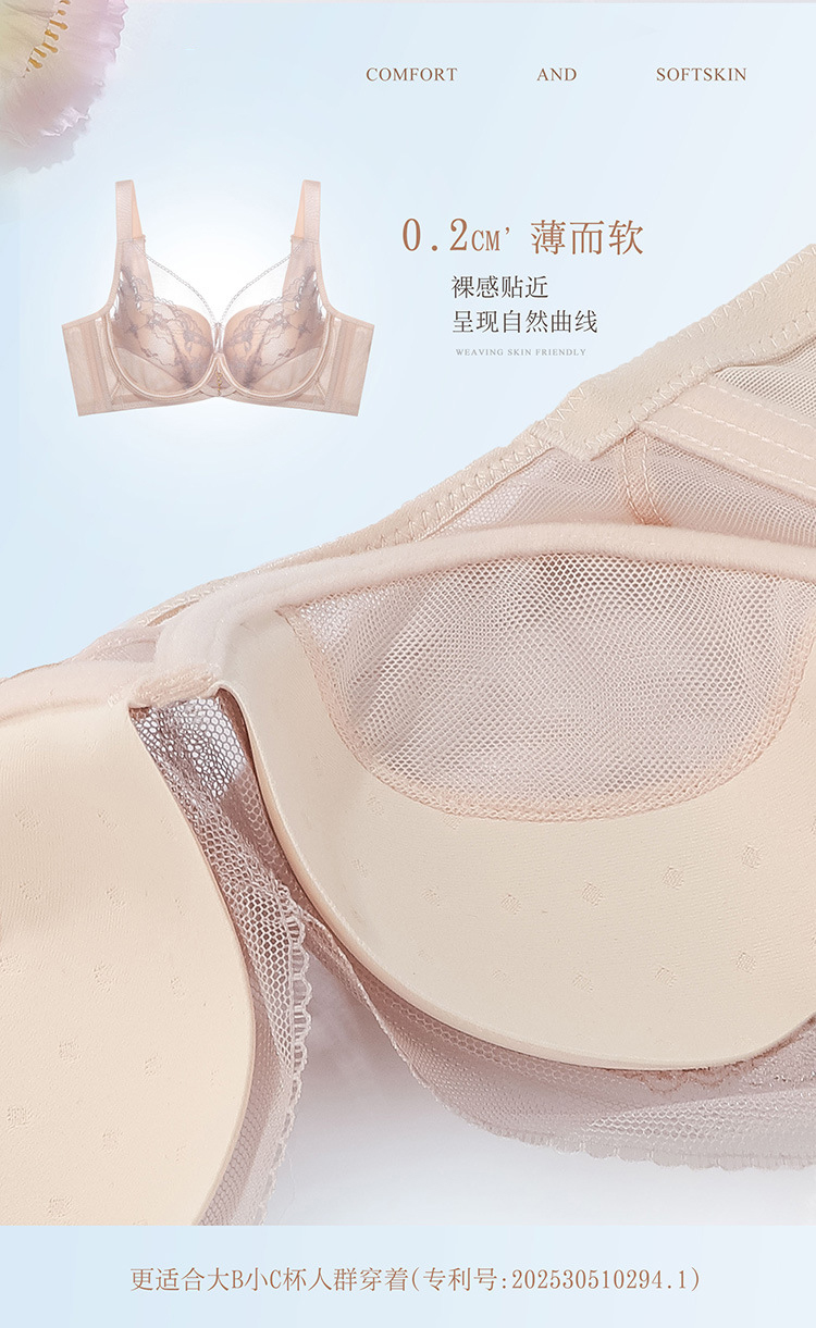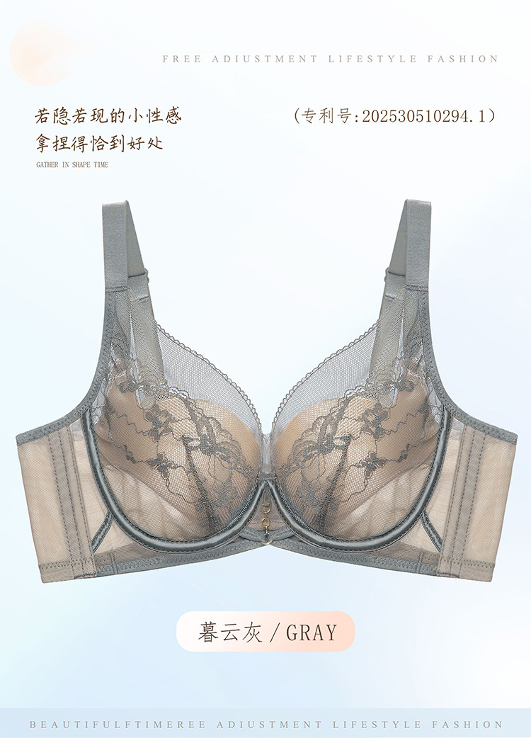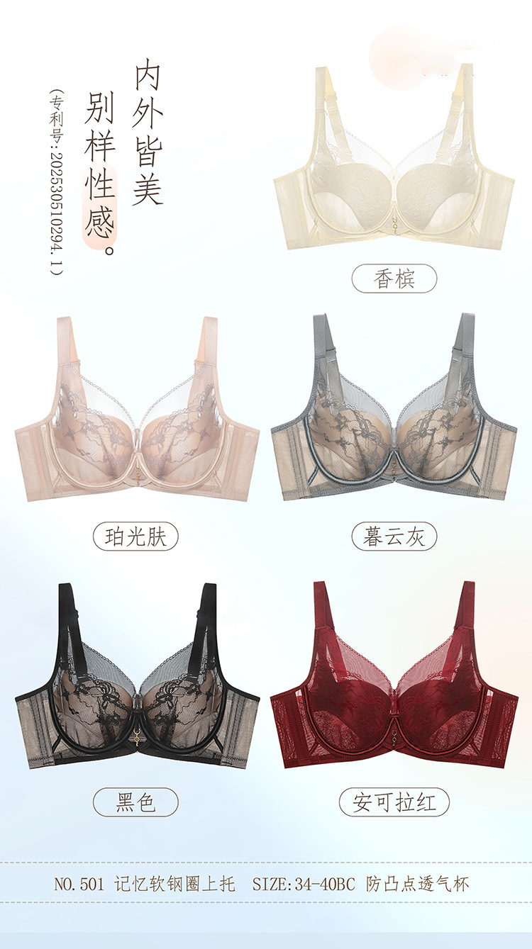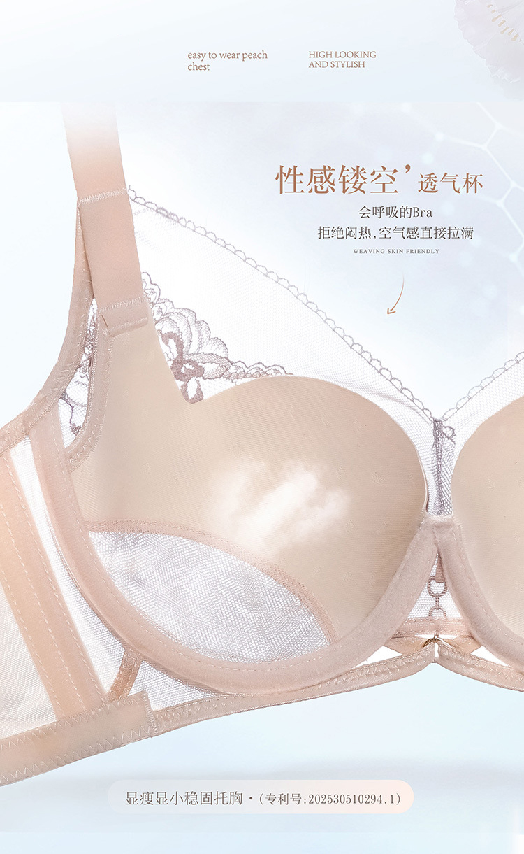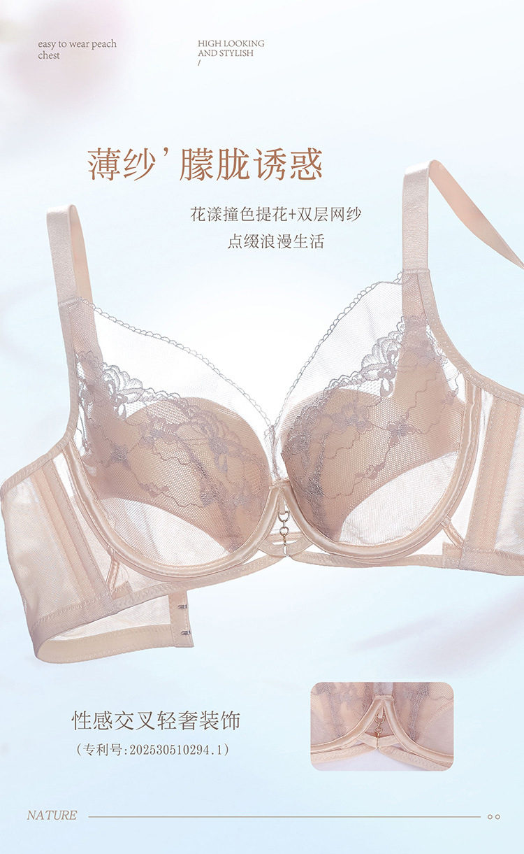 ZYQ-501 性感蕾丝内衣纯欲镂空薄款透气舒适软钢圈上托聚拢调整型法式文胸(单件)