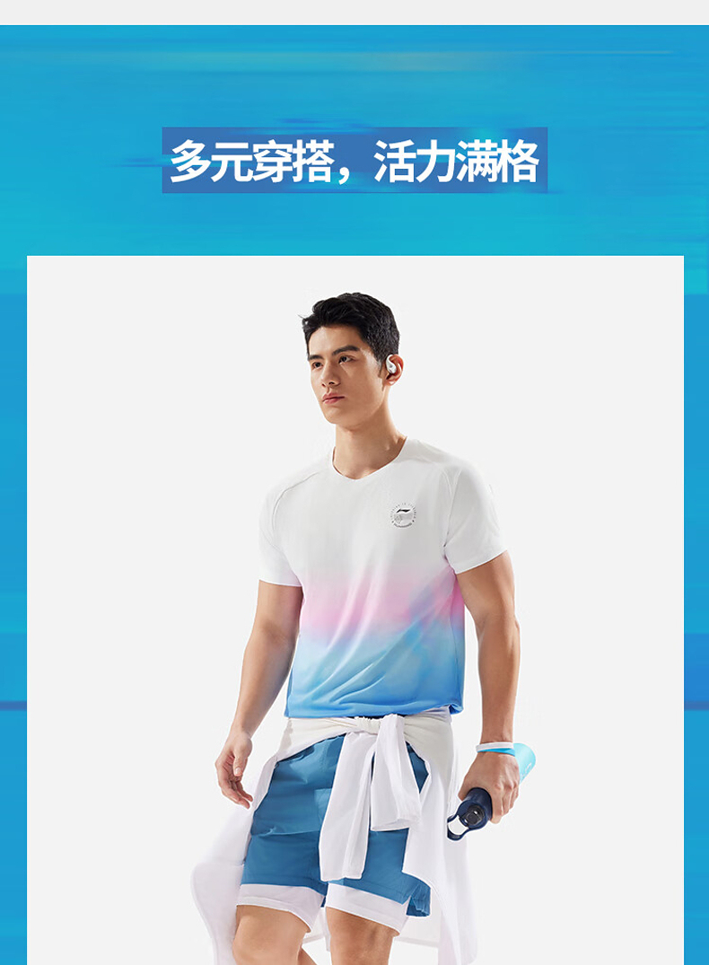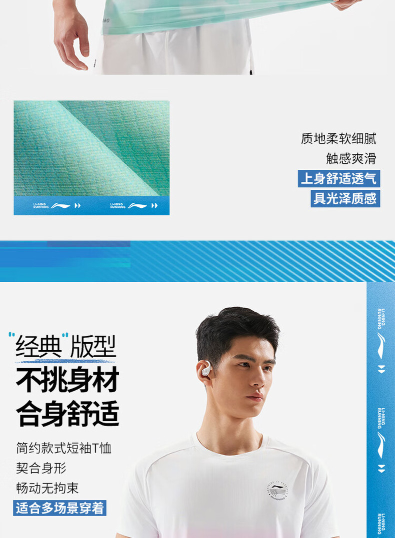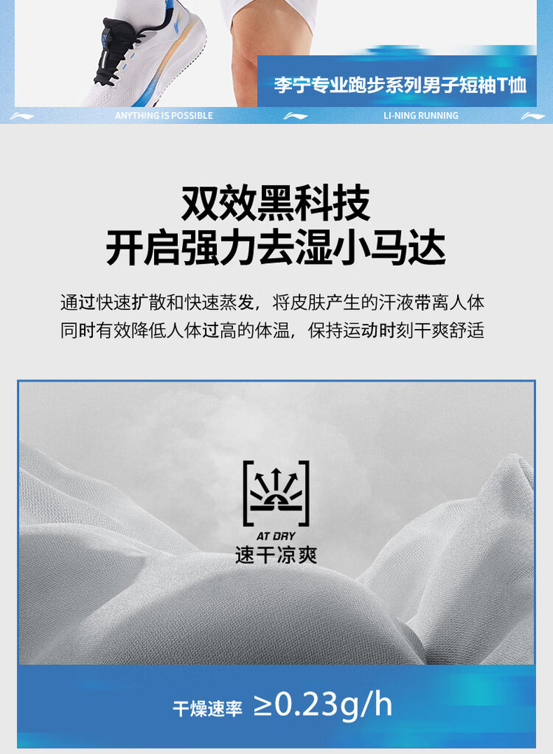 李宁专业跑步系列男子速干凉爽短袖T恤ATSV091