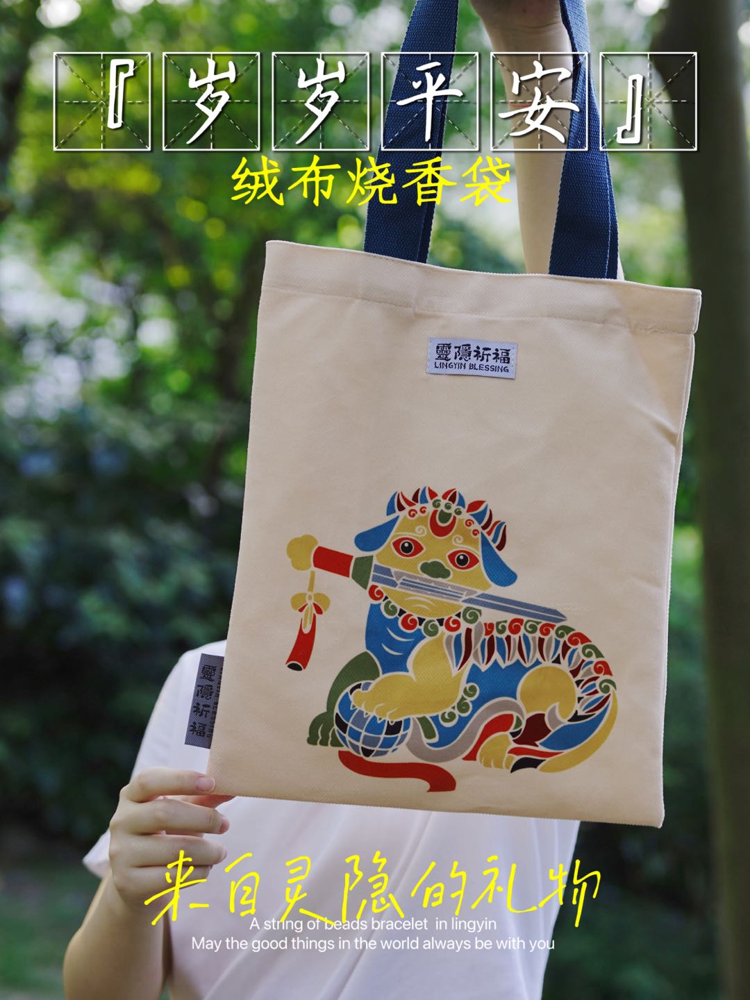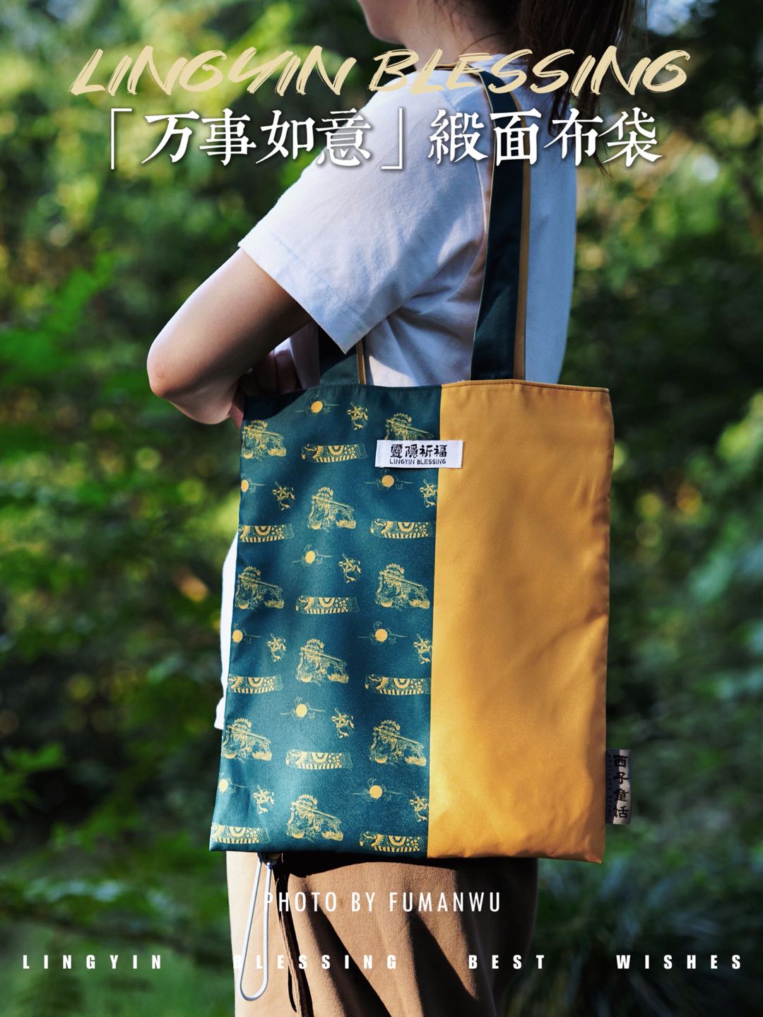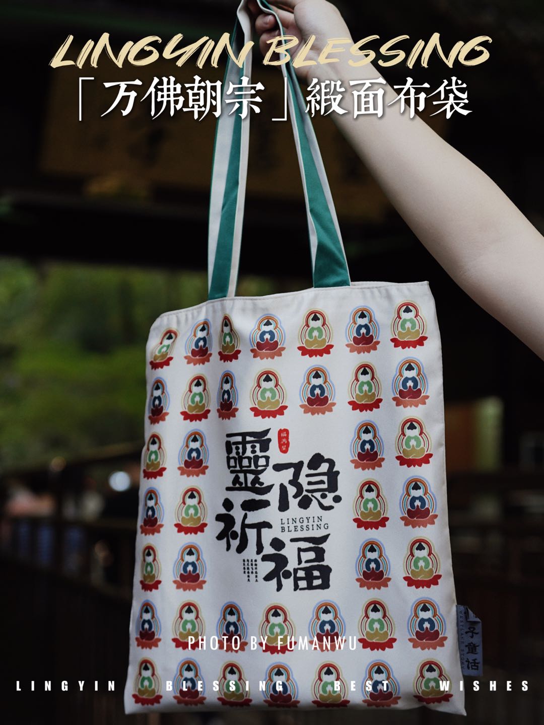 【灵隠景区发货】杭州灵隠新品绒布袋丝绸缎面单肩包国风帆布袋文艺手拎包女包