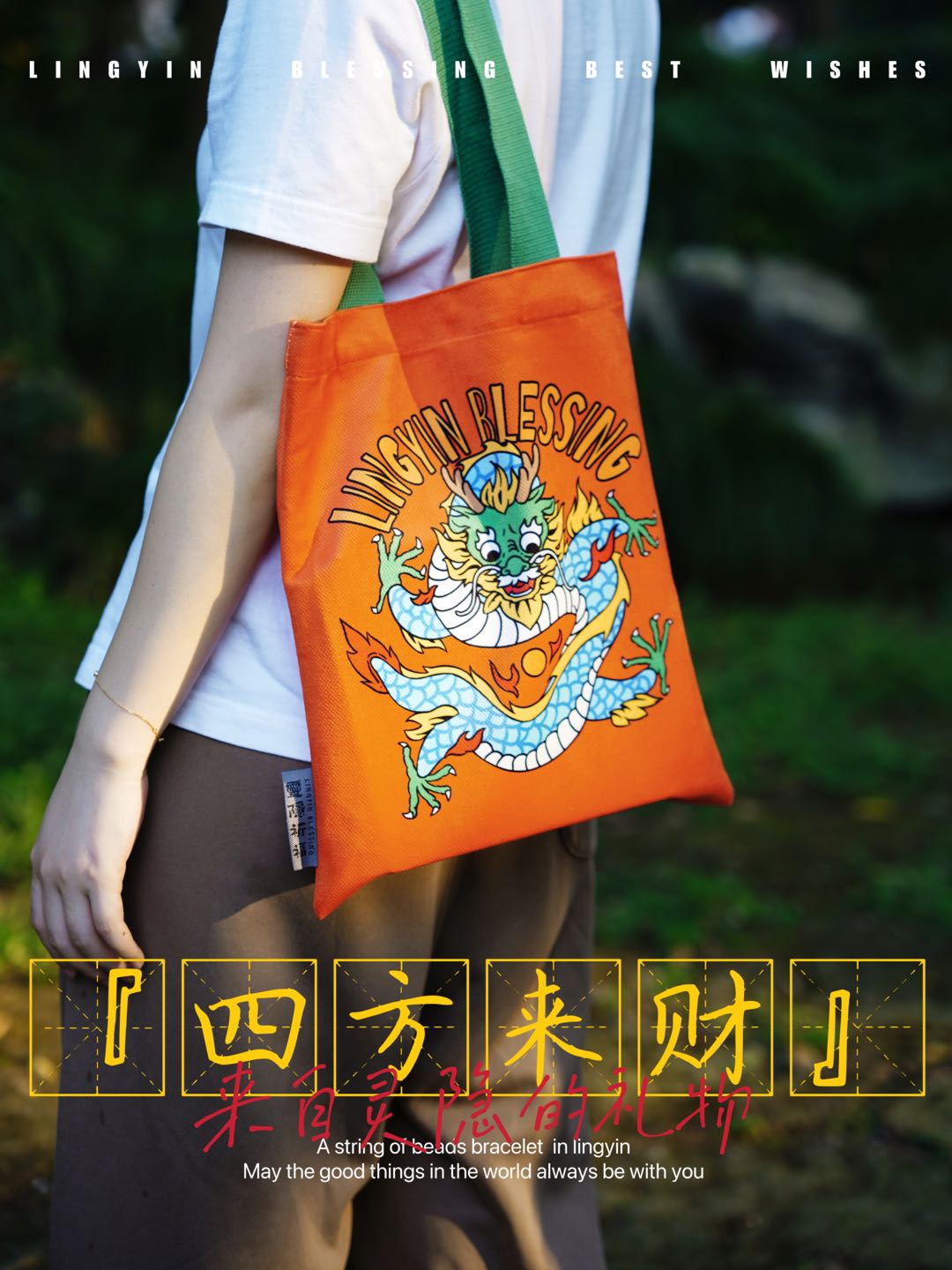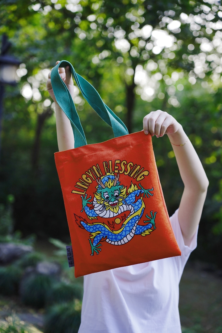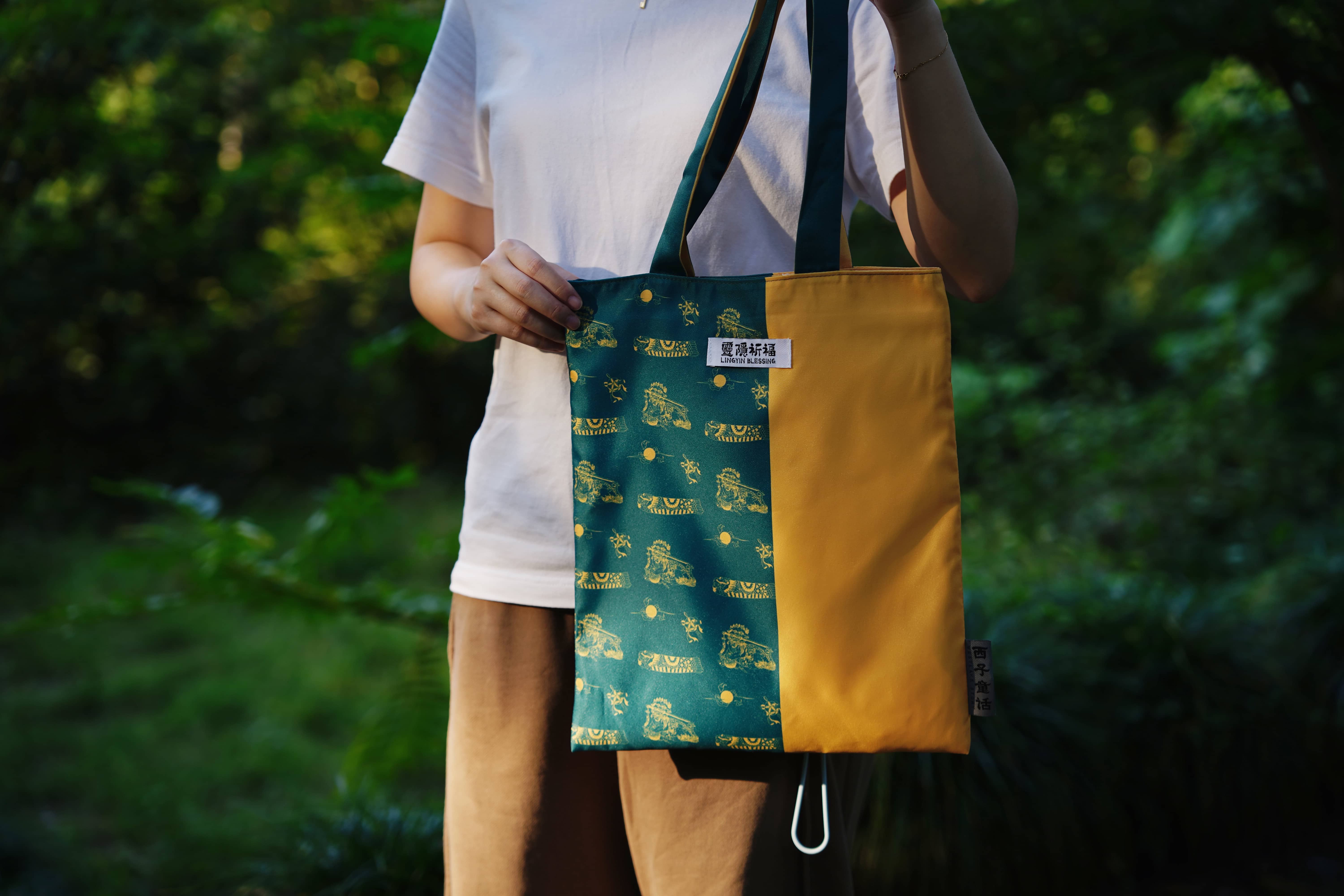 【灵隠景区发货】杭州灵隠新品绒布袋丝绸缎面单肩包国风帆布袋文艺手拎包女包
