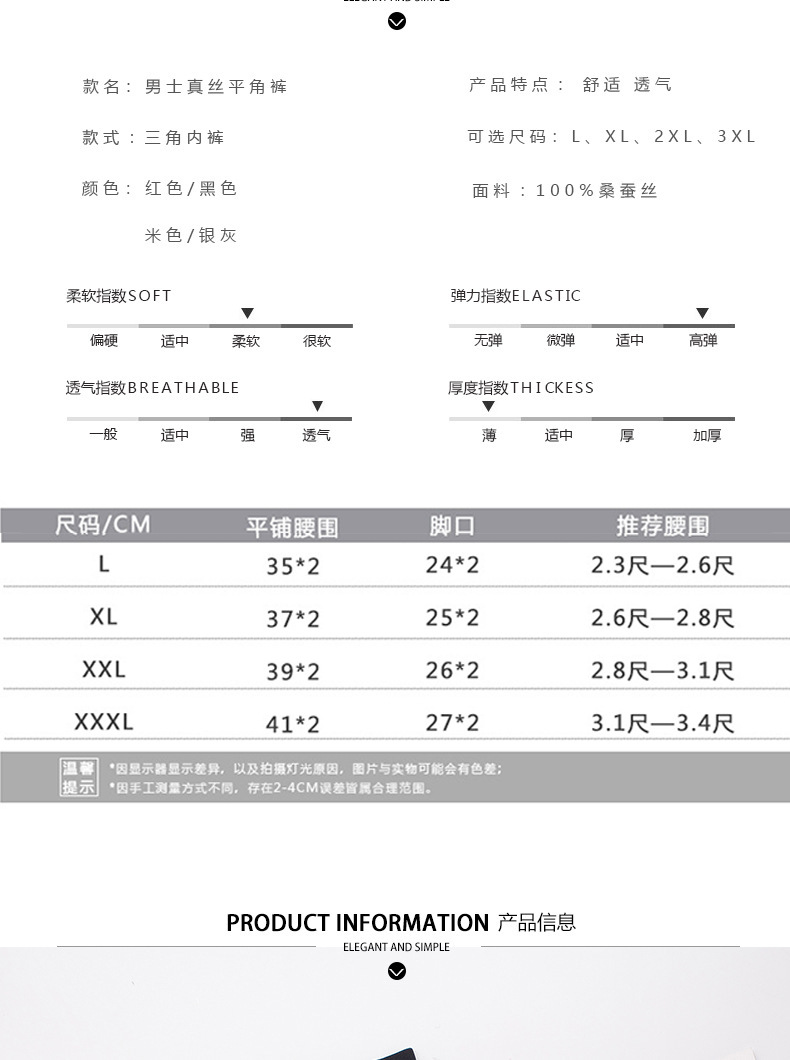 ARN-K051新款纯色速干真丝内裤内裤轻薄冰爽平角裤四角短裤头