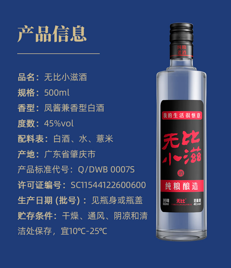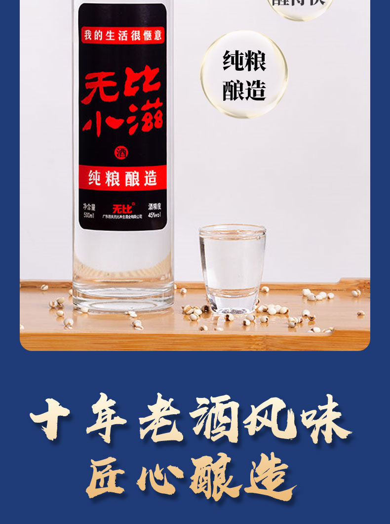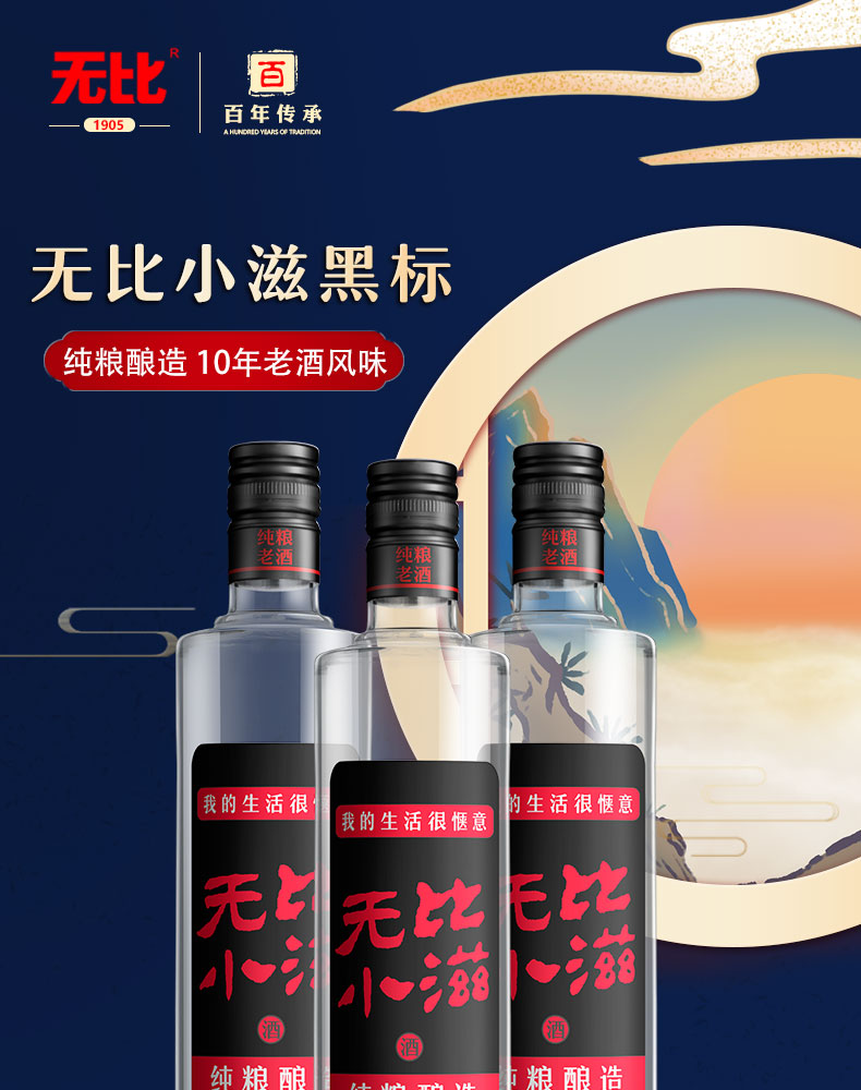 【纯粮老酒】无比小滋·黑标 45度 500ml 凤酱兼香型白酒