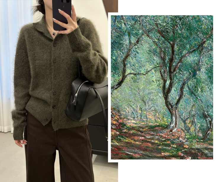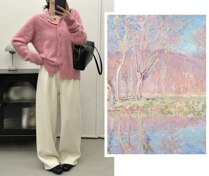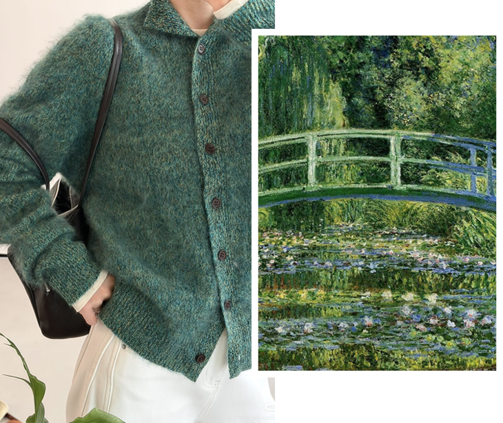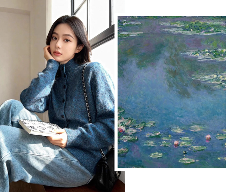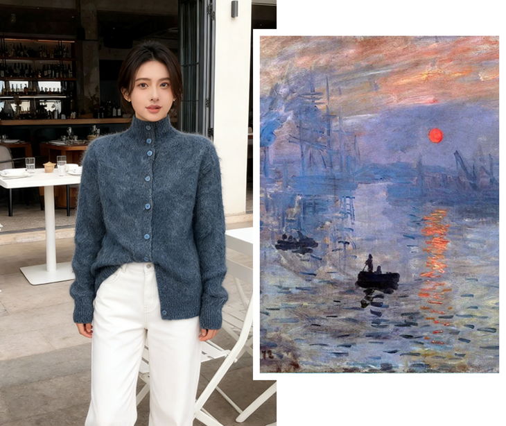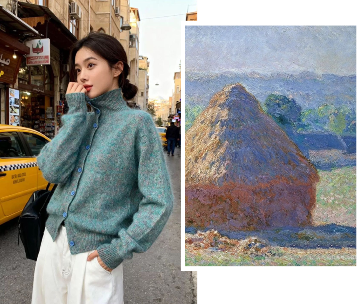 当莫奈的调色盘遇见花纱针织工艺,将印象派的色彩魔法编织进每寸纤维,让简约的针织衫成为会移动的艺术品。