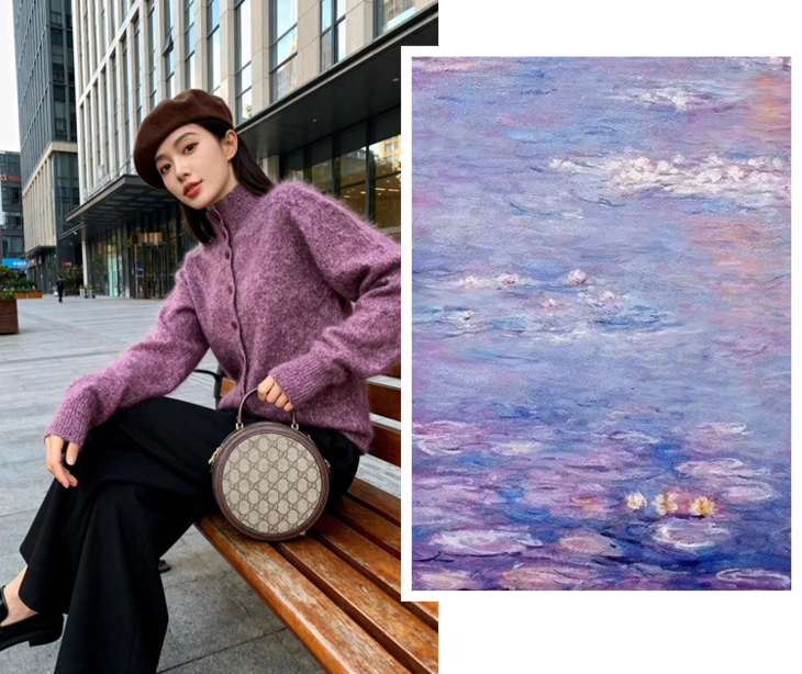 倘若将莫奈的调色,打翻在羊毛里,碰撞出来的高级感不亚于“莫奈花园”: