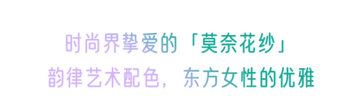 花纱配色灵感源于莫奈《干草堆》晨雾版,蓝绿色基调加入粉色营造早上晨曦的感觉,以米白色增添光感,自带柔光镜效果。