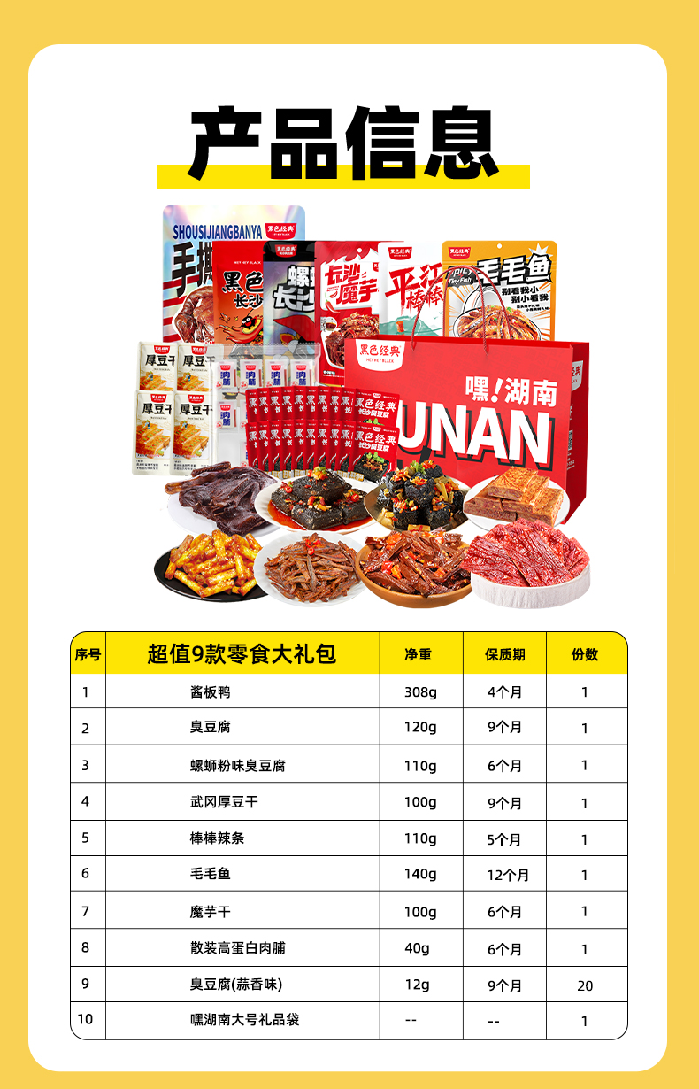 黑色经典湖南特产零食大礼包1098g休闲即食解馋小吃臭豆腐酱板鸭