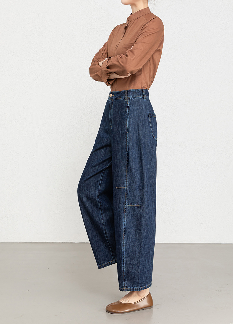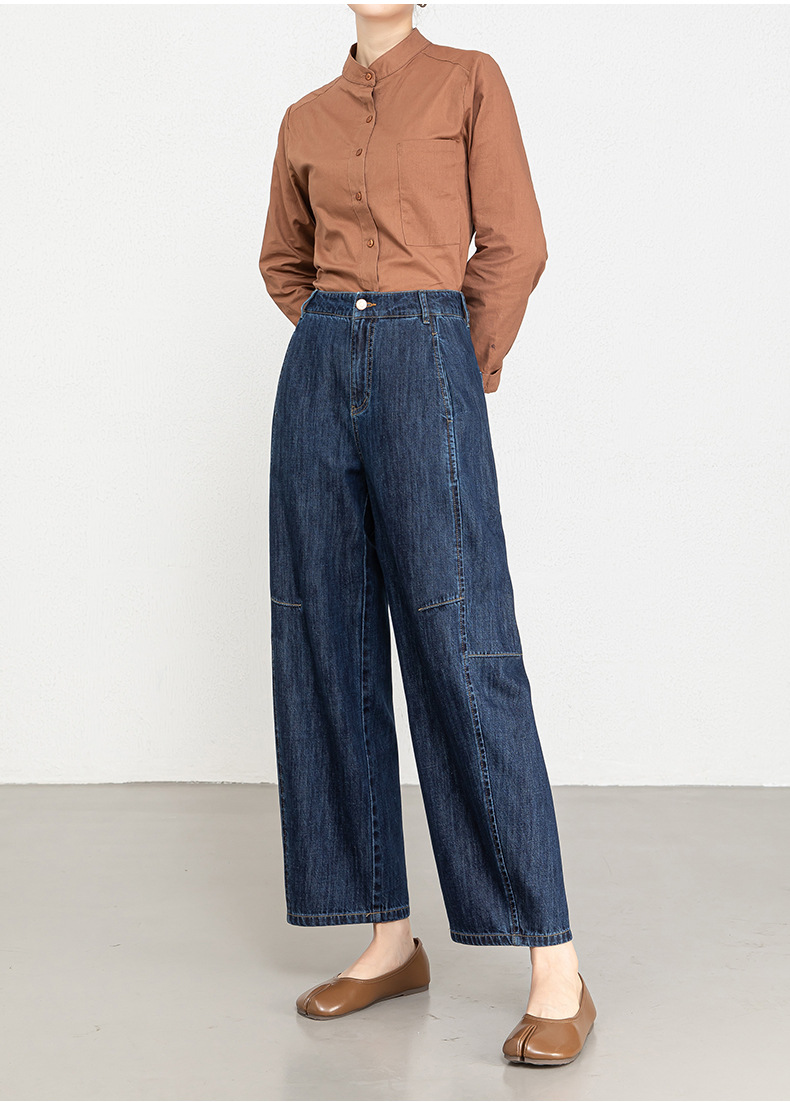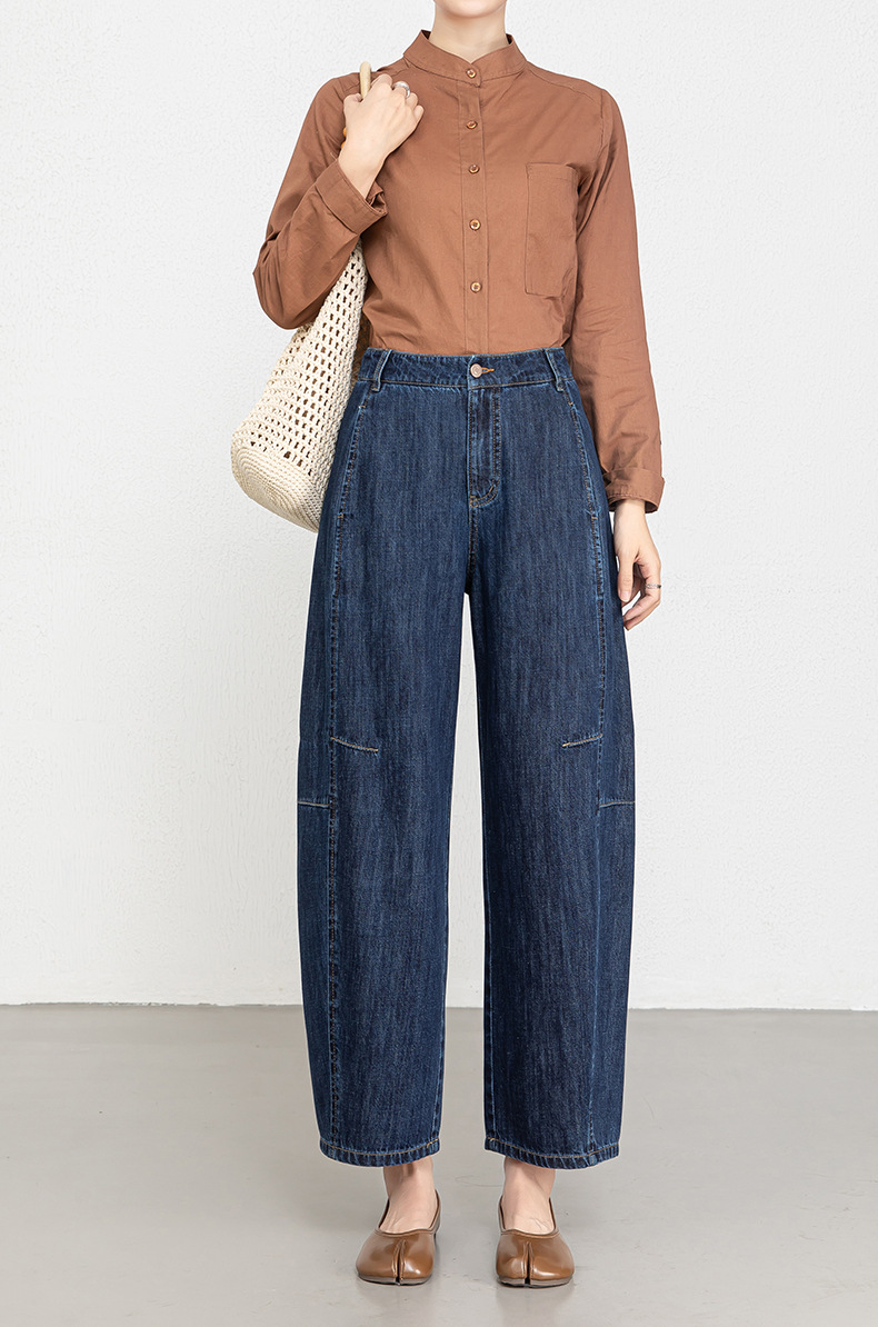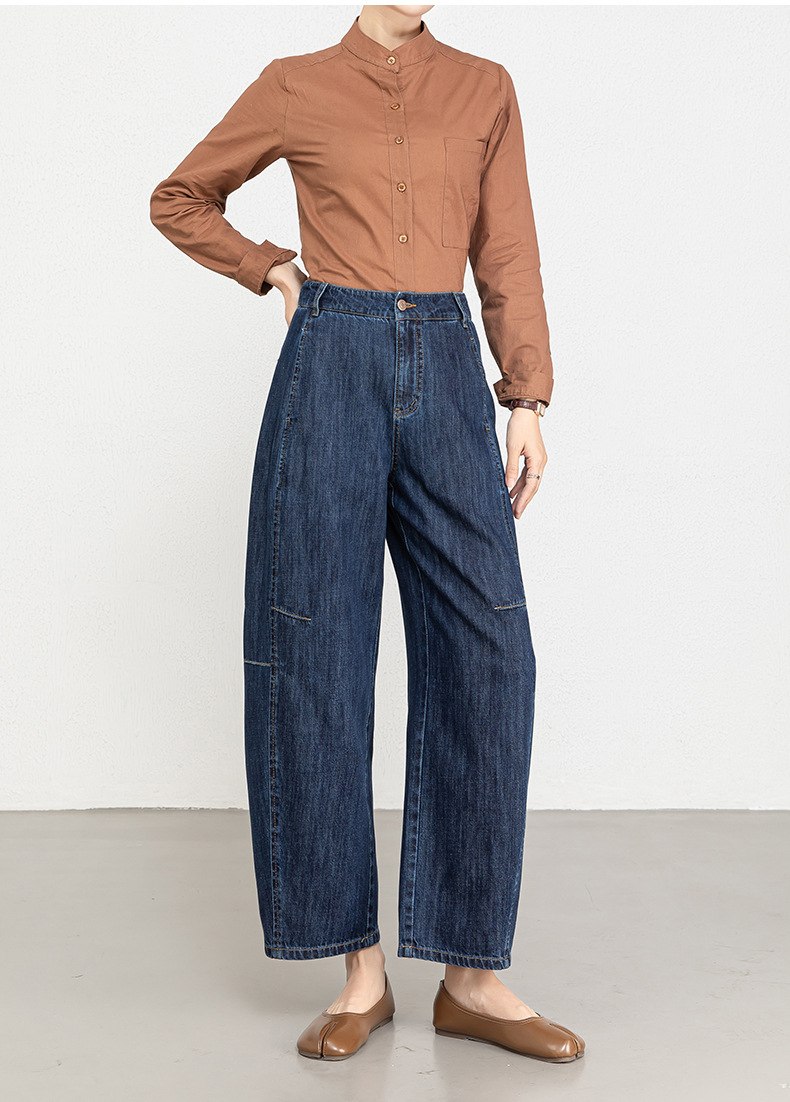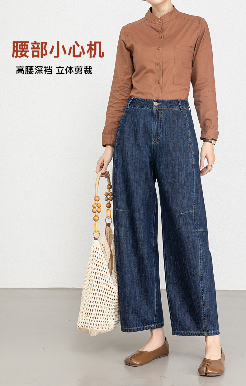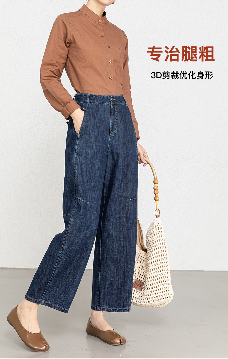 百媚生 莱赛尔汉麻弯刀裤女高腰宽松香蕉牛仔九分裤8270 商品图0
