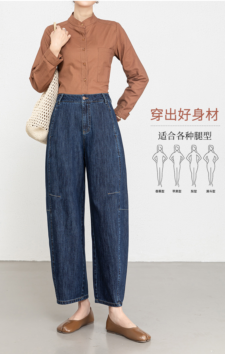 百媚生 莱赛尔汉麻弯刀裤女高腰宽松香蕉牛仔九分裤8270 商品图4