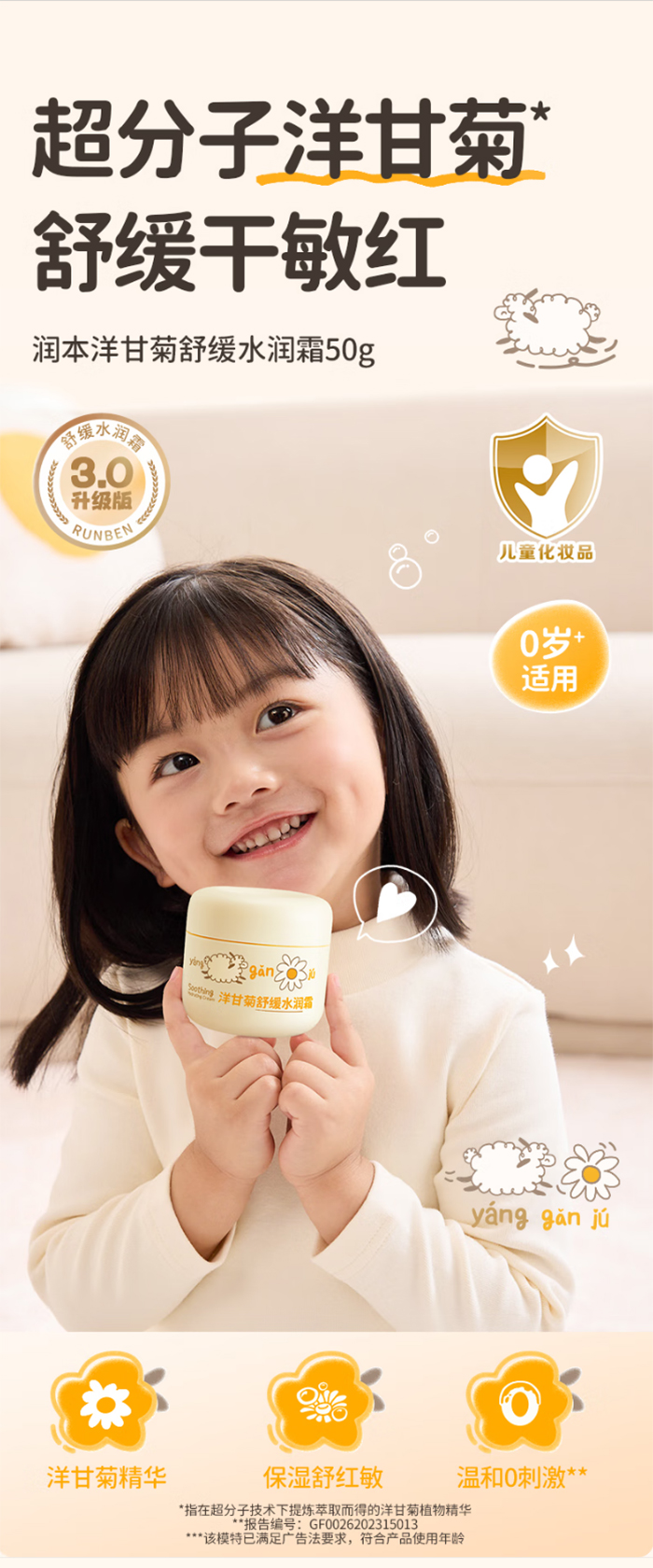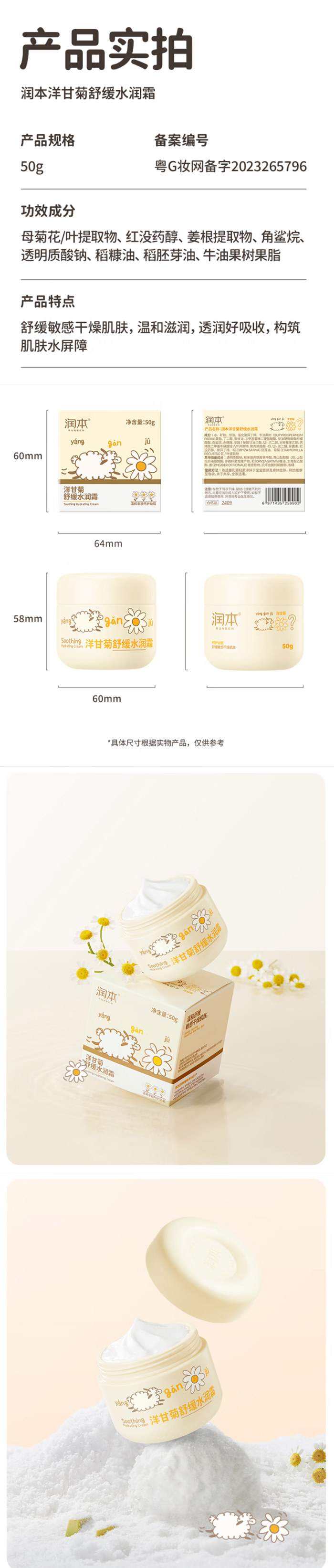 润本婴儿洋甘菊舒缓水润霜50g
