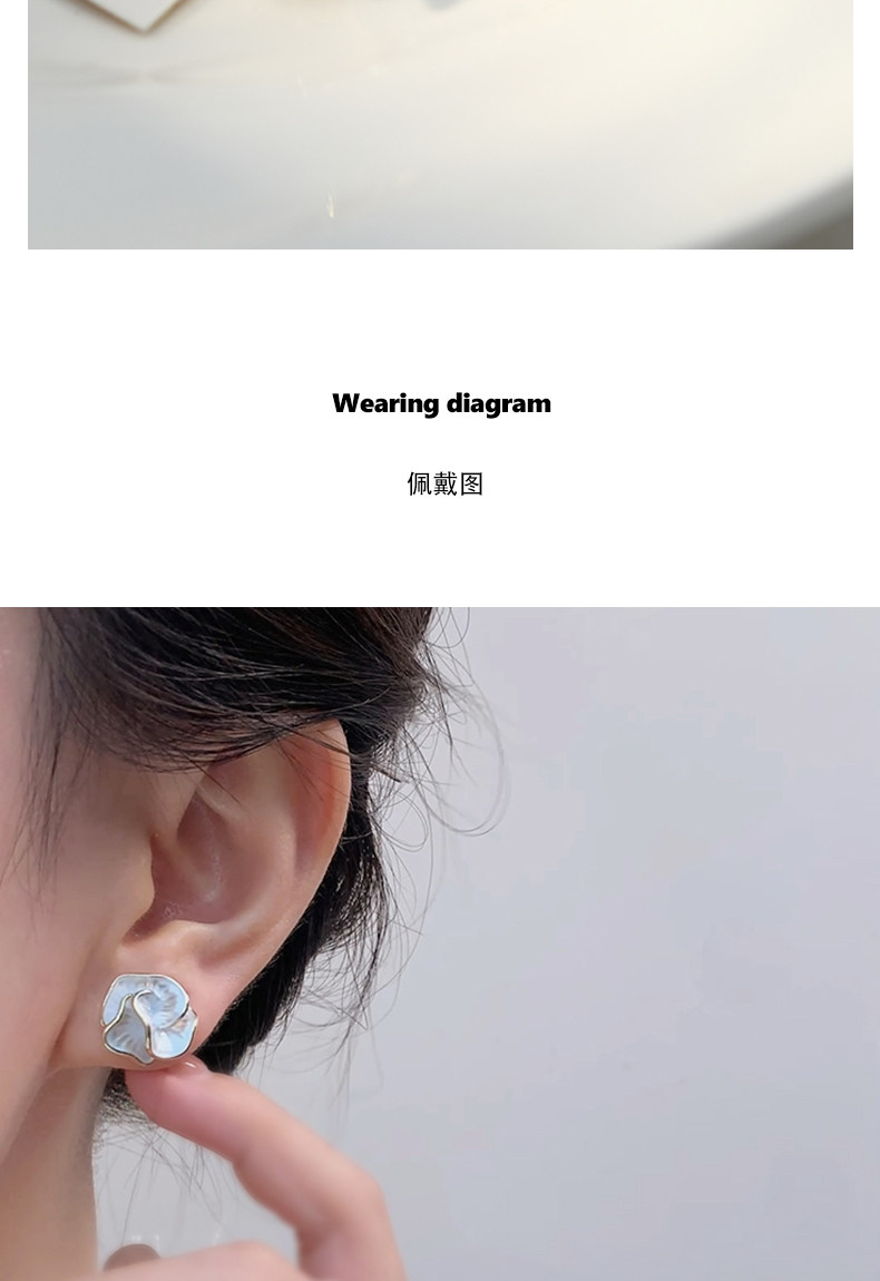 丁摩 s925纯银针耳钉女 山茶花耳环小众轻奢高级感气质耳饰5ZF-294