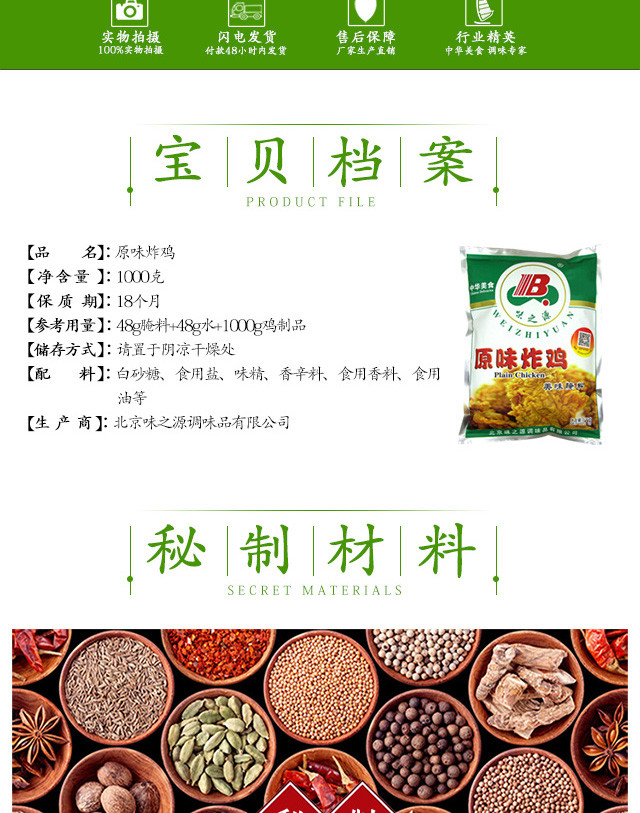 【味之源】原味炸鸡 肉制品腌料1000g/袋