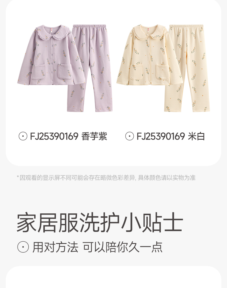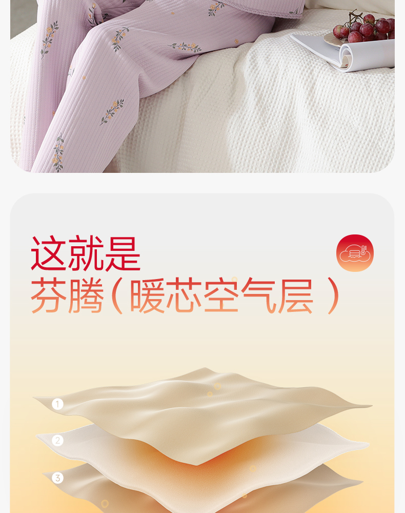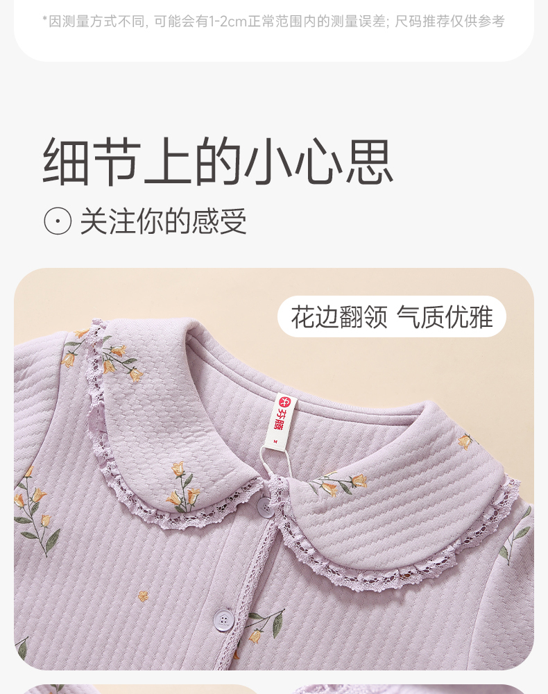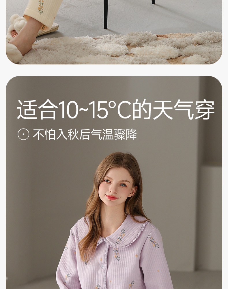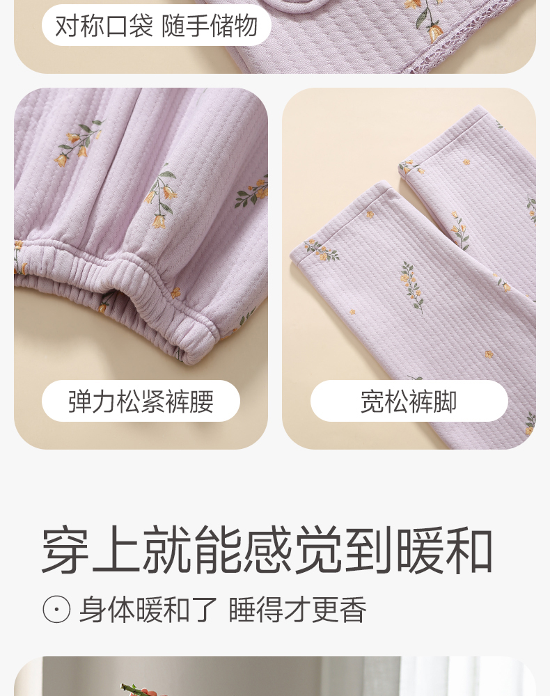 芬腾睡衣女秋冬纯棉空气棉夹层长袖抗菌春秋套装宽松加大码家居服