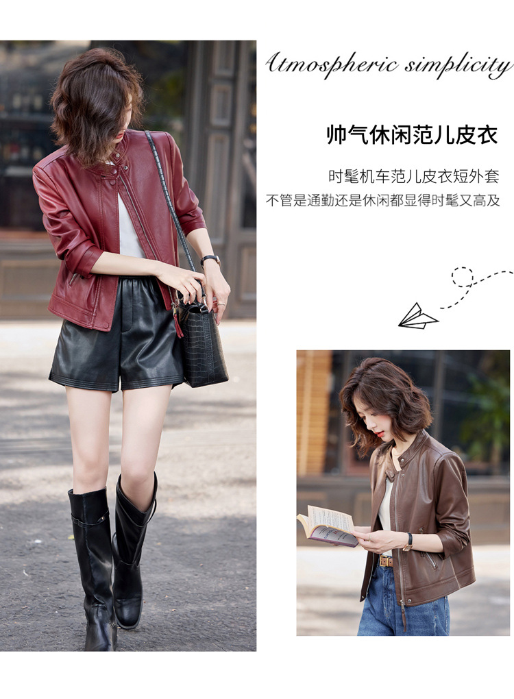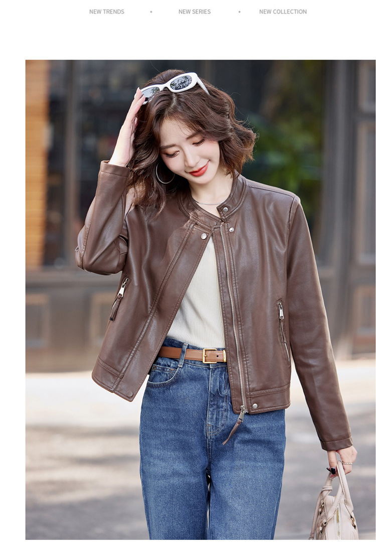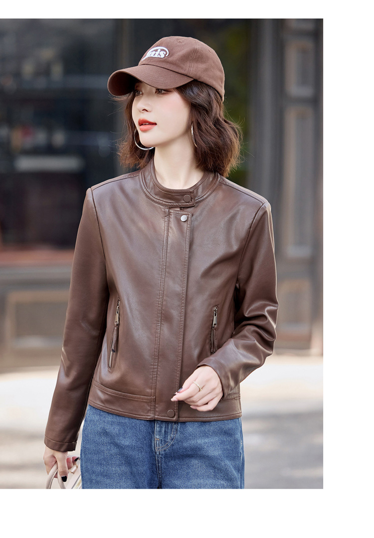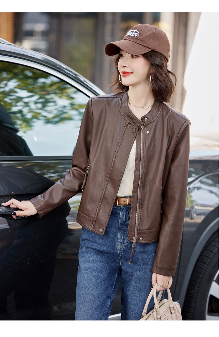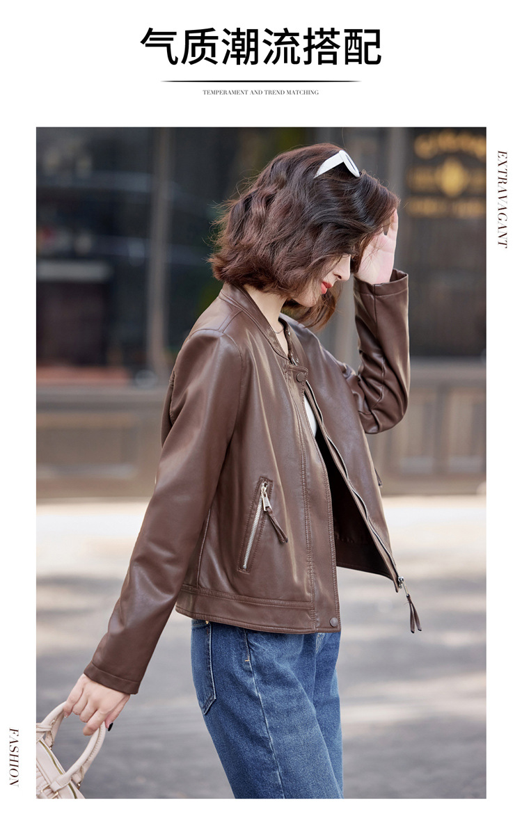 丁摩 复古港风百搭水洗皮PU皮衣女短款外套小个子春秋季新款机车服潮5ZF-828959