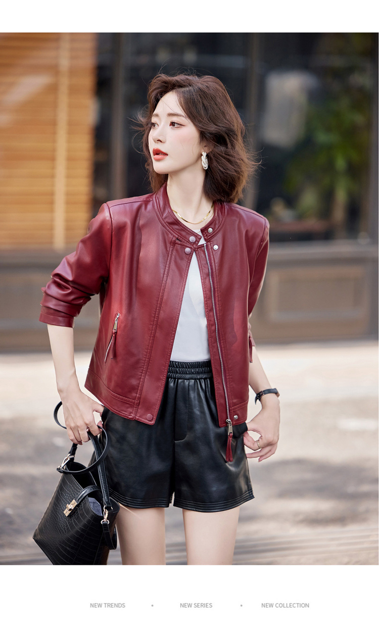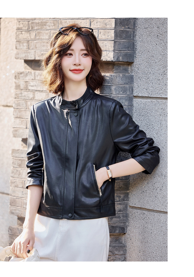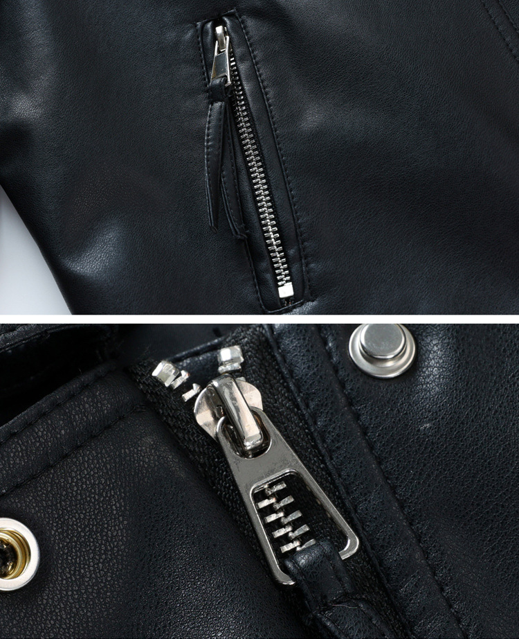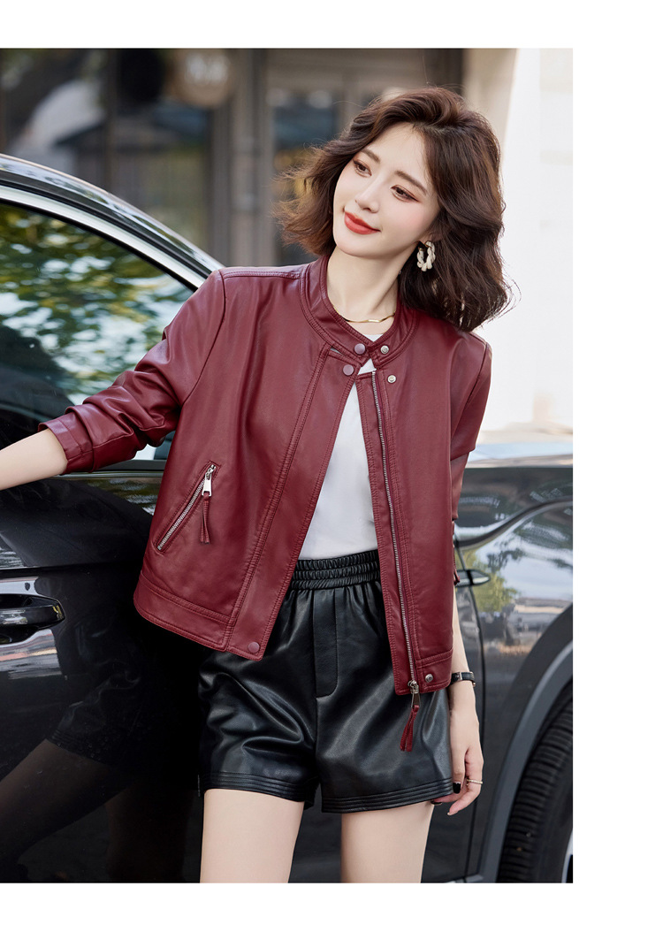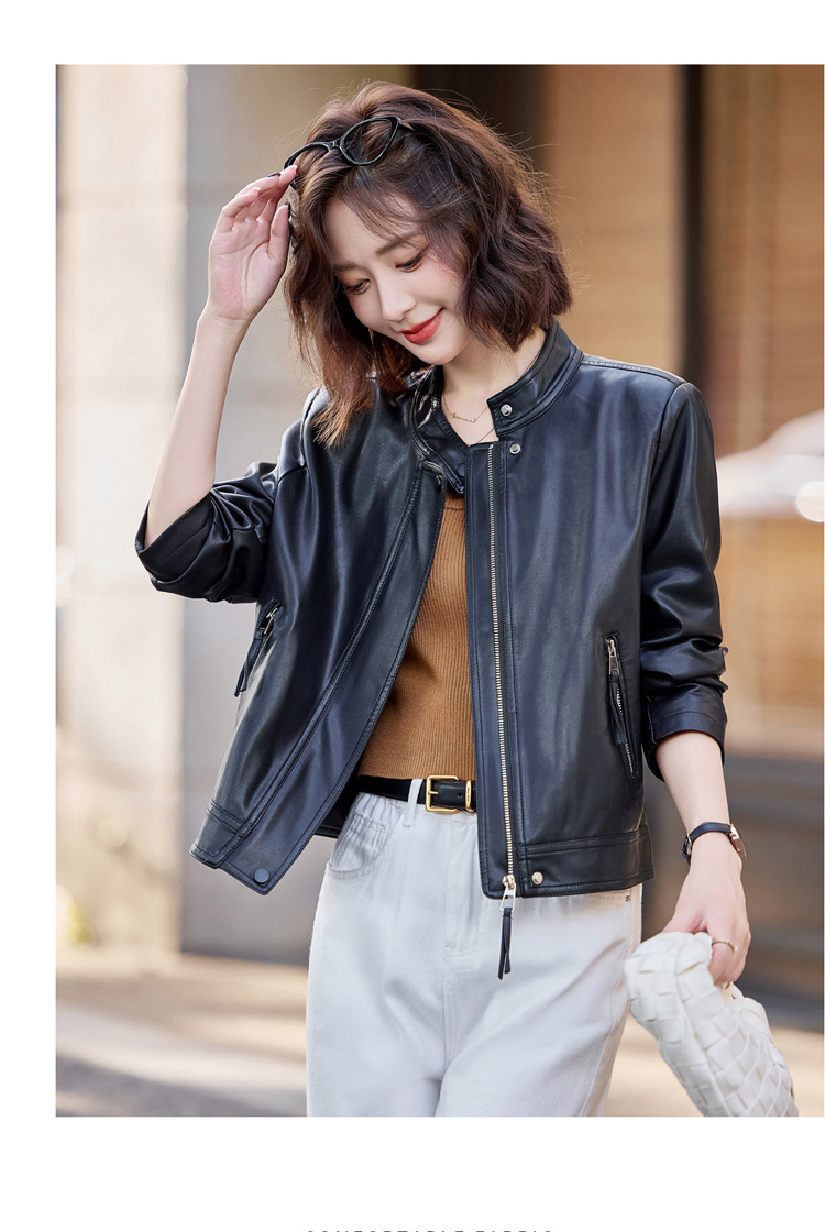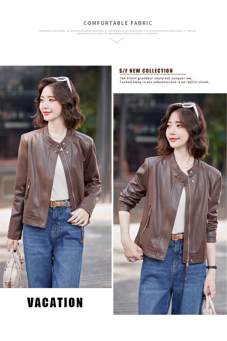 丁摩 复古港风百搭水洗皮PU皮衣女短款外套小个子春秋季新款机车服潮5ZF-828959