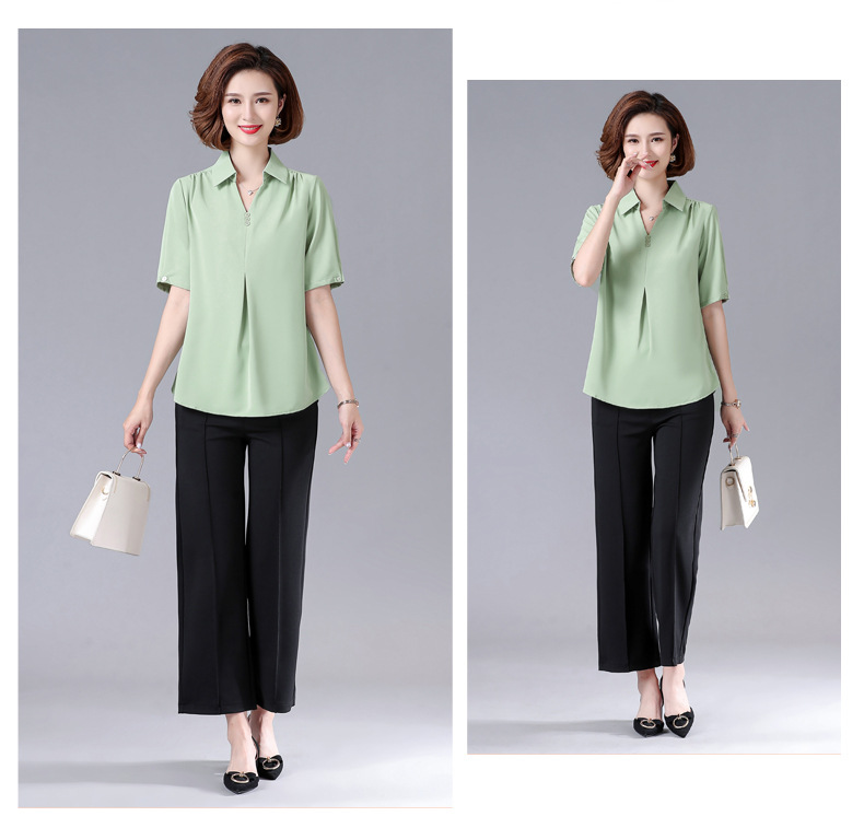 MQ-3164-1071-2夏装新款中袖40岁50洋气衬衫YY