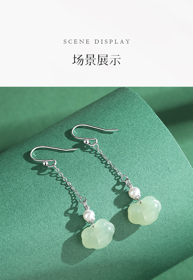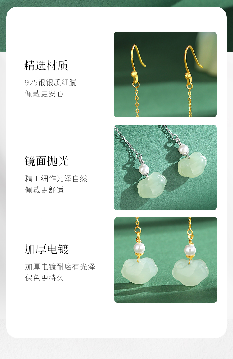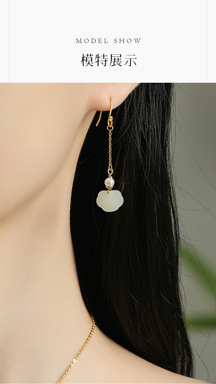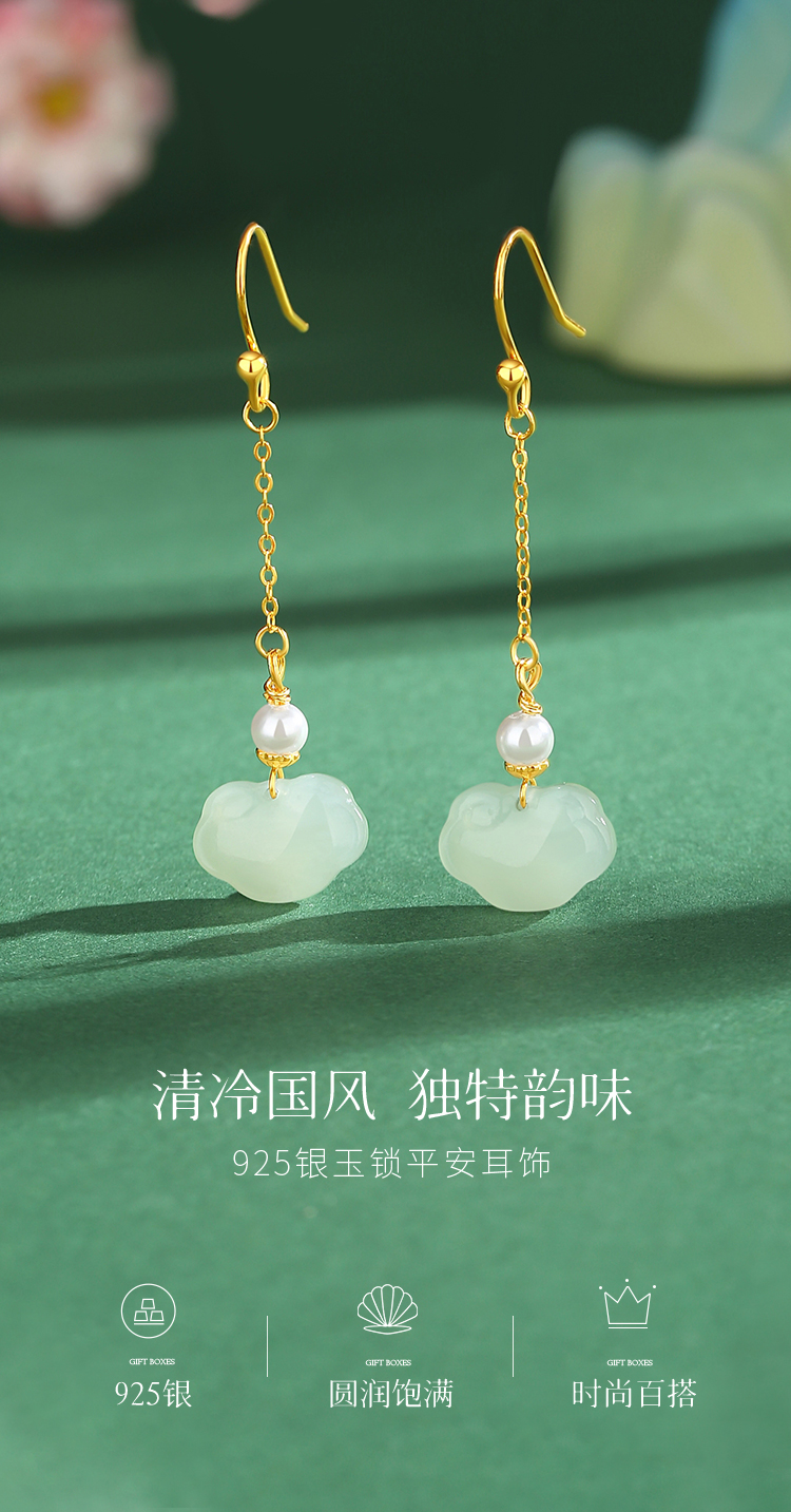 Winy925纯银玉锁平安耳饰送女友闺蜜节日生日礼物