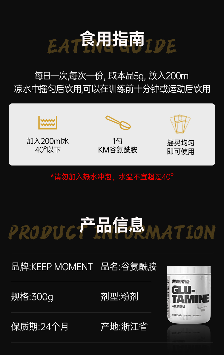 KEEP MOMENT凯普锐斯高纯谷氨酰胺300g一罐原味谷氨酰胺