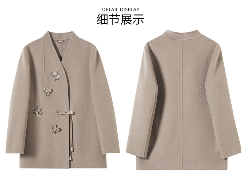 TC 215887双面羊毛大衣大码新中式国风刺绣羊毛呢外套 商品图4