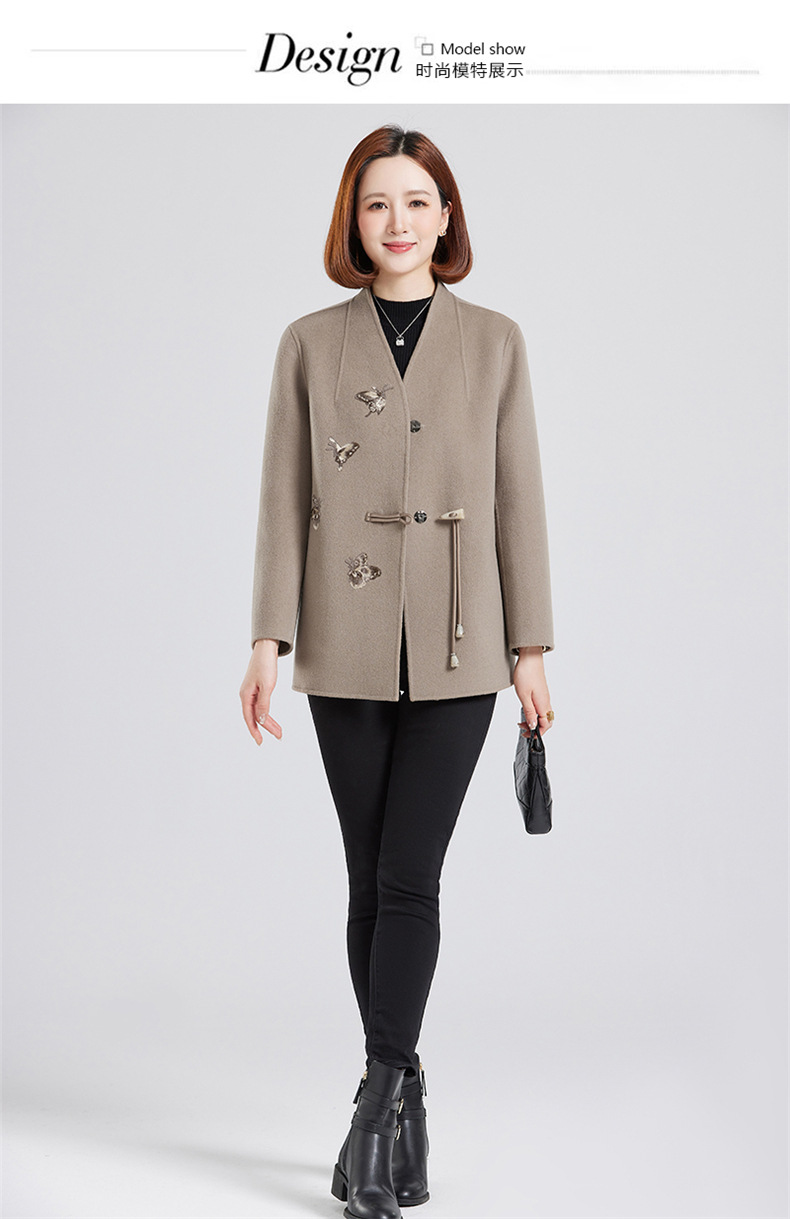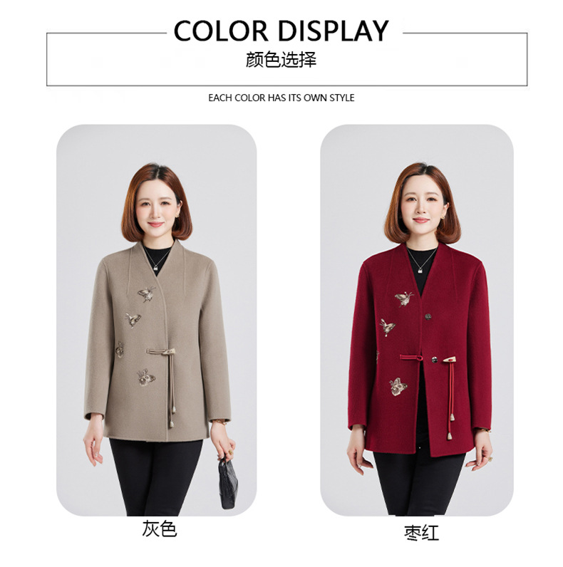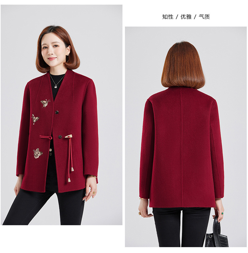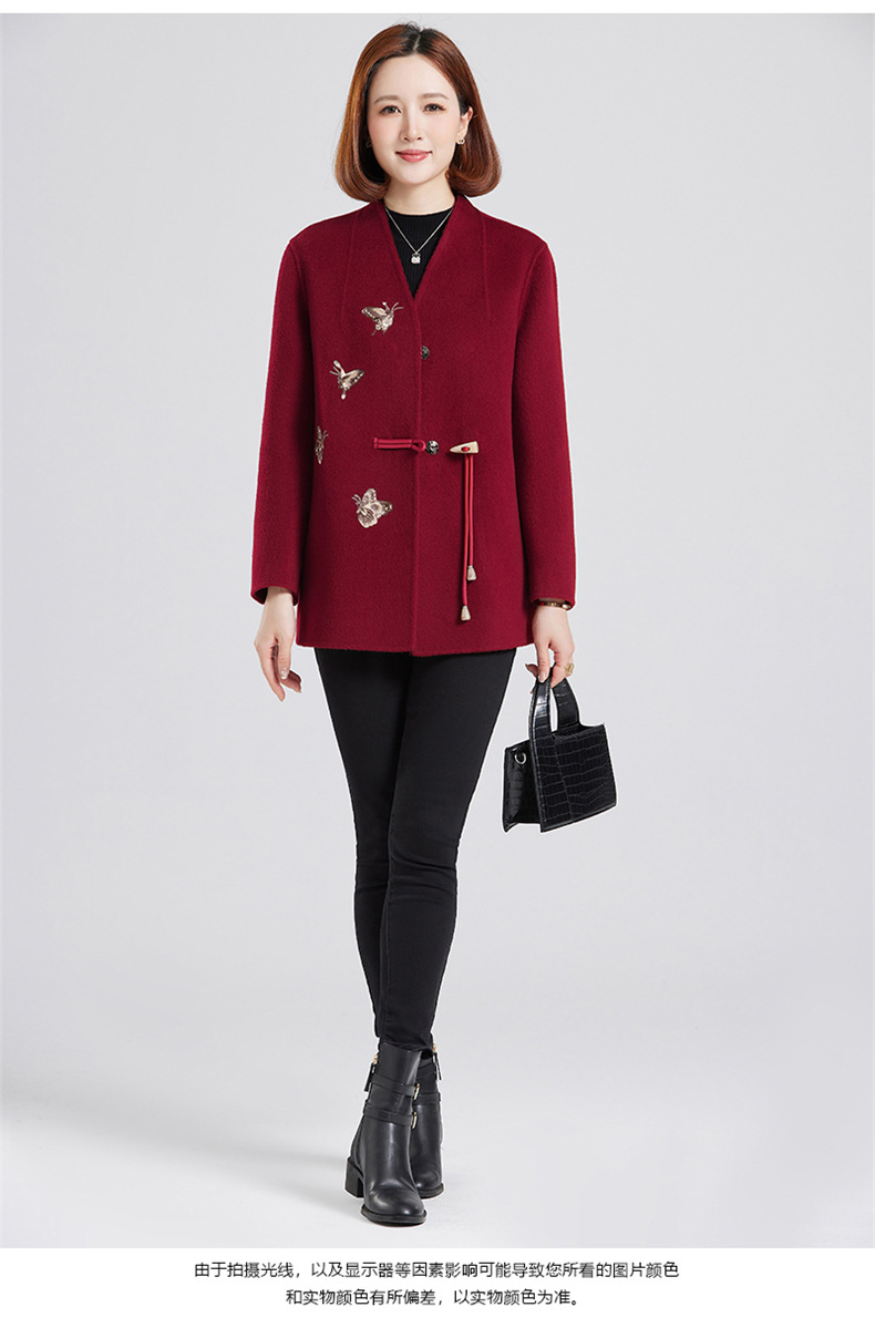 TC 215887双面羊毛大衣大码新中式国风刺绣羊毛呢外套