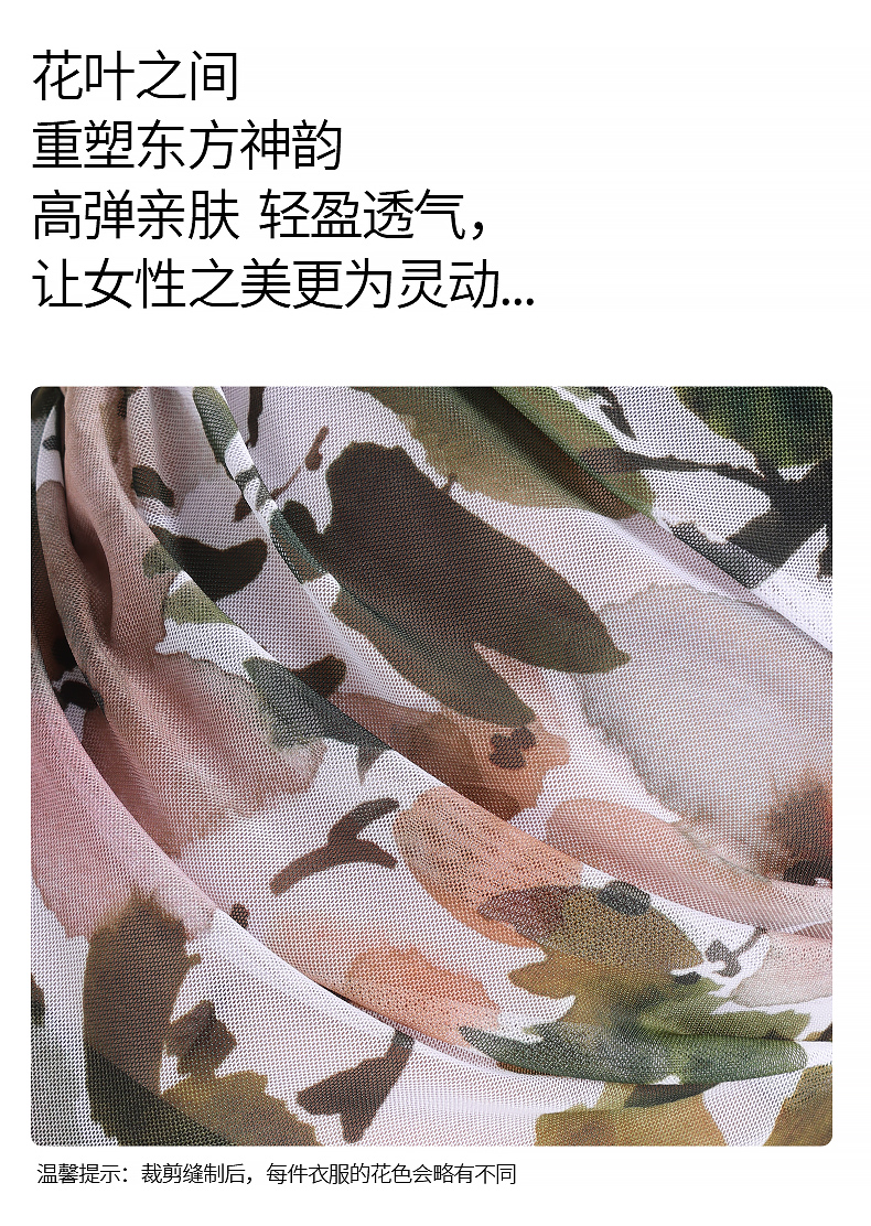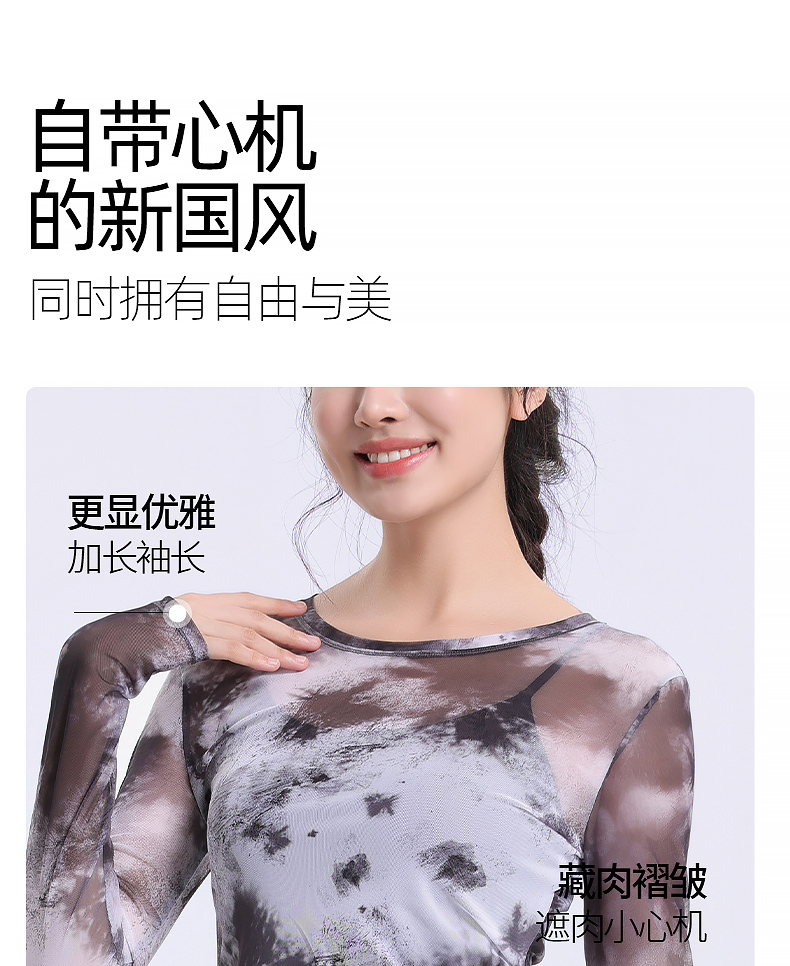 梵美人 F2203 瑜伽罩衫网纱 无胸垫 网纱印花
