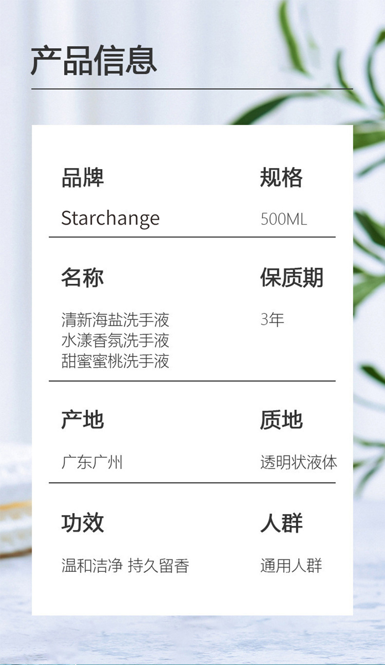 【绵密泡沫!持久留香】清新海盐洗手液水蜜桃清香家用装香氛清洁呵护不伤手清洁液。xb