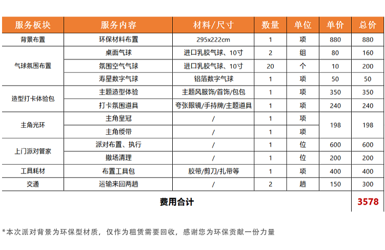童禧 光影生日派对套餐