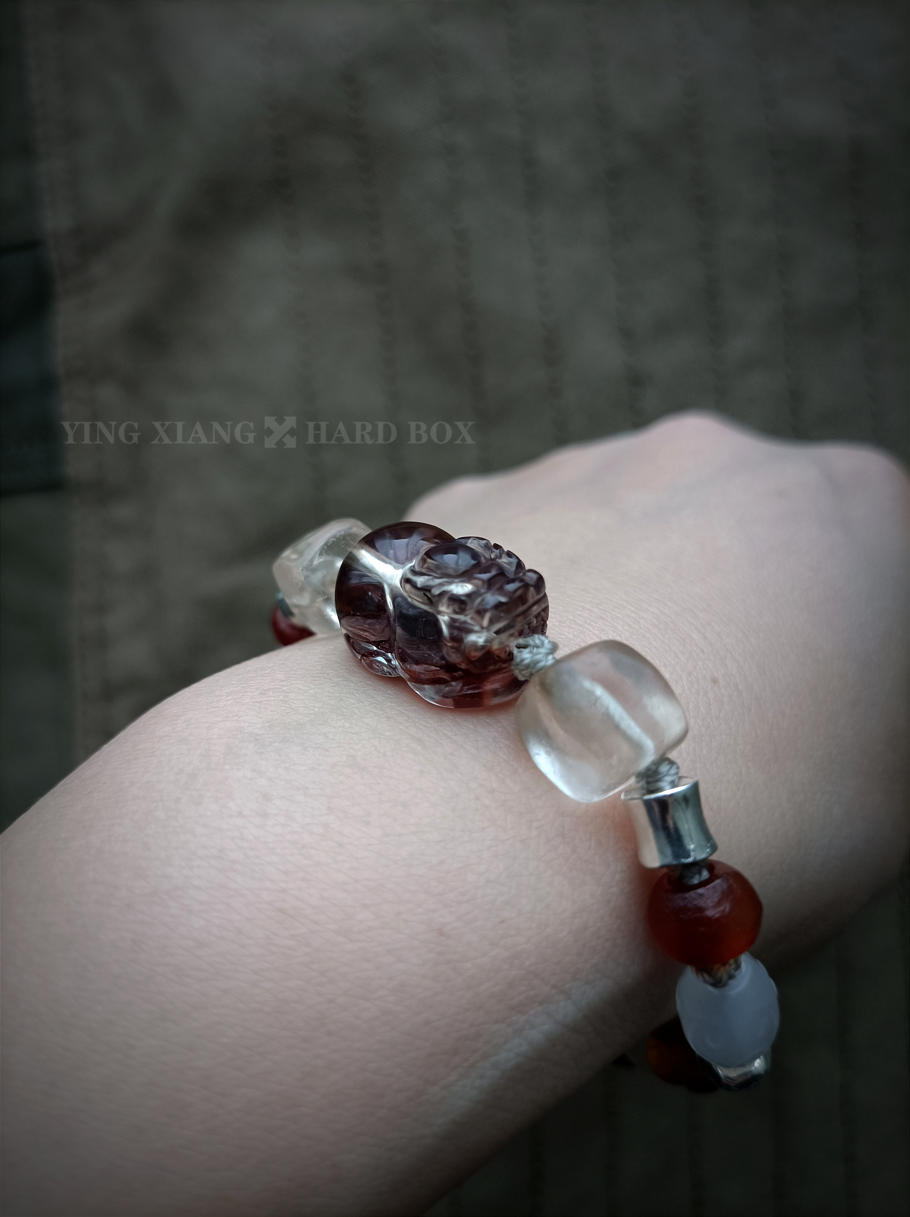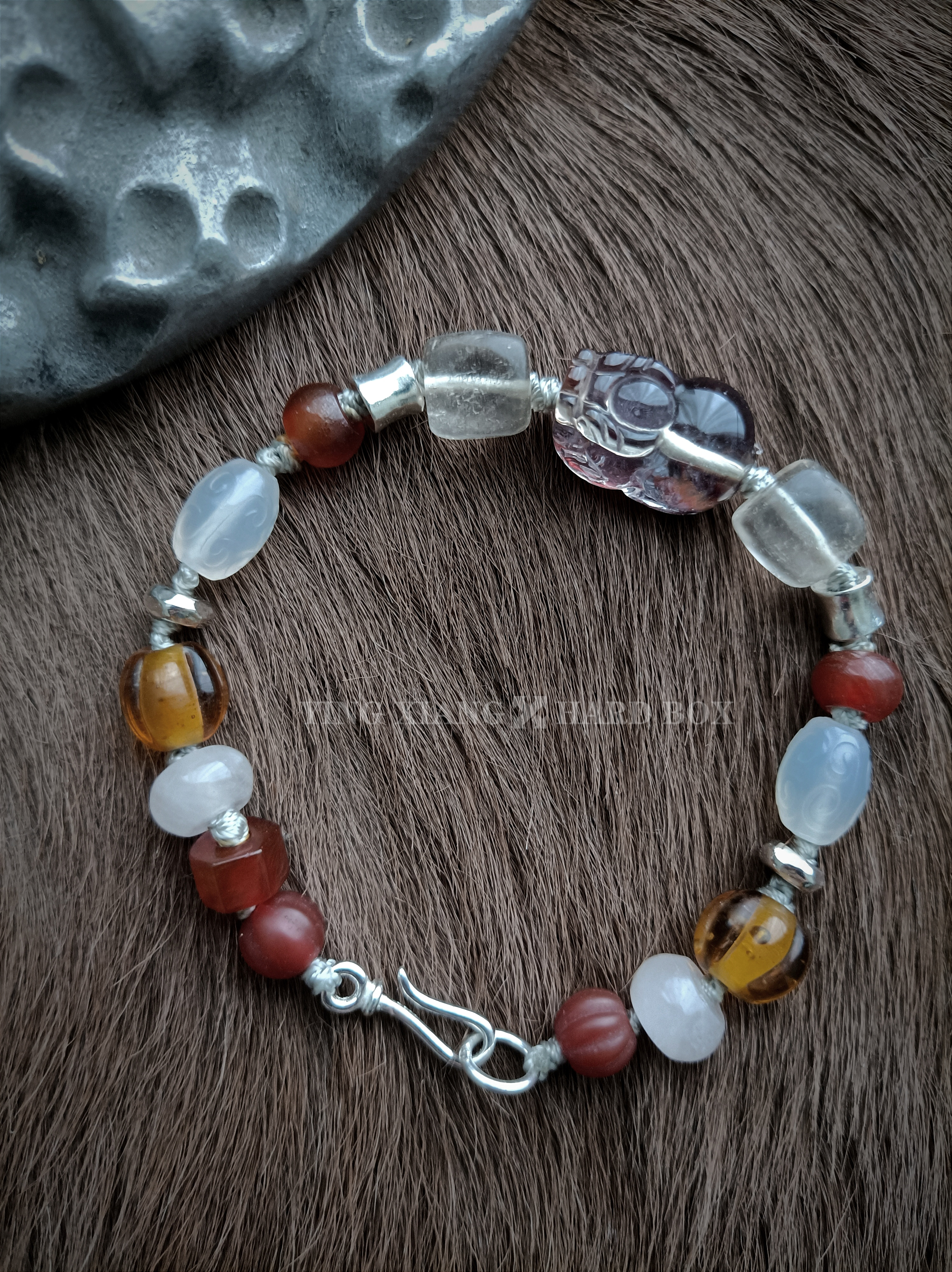 牛血胶花貔貅 西亚老水晶 西亚老琉璃珠 925银隔珠+连接扣