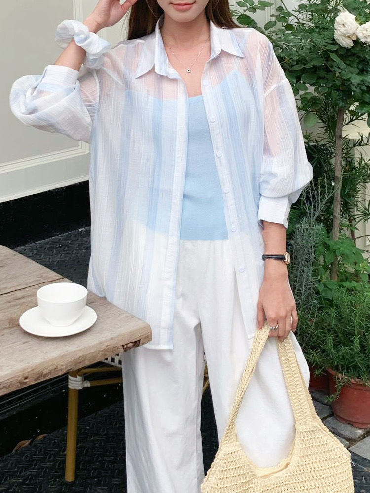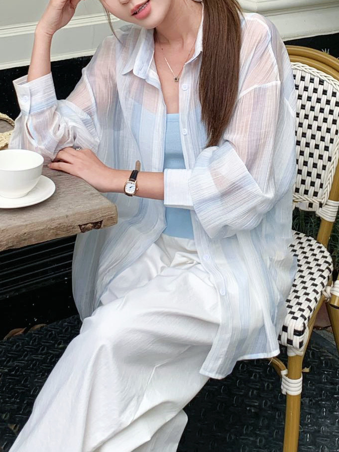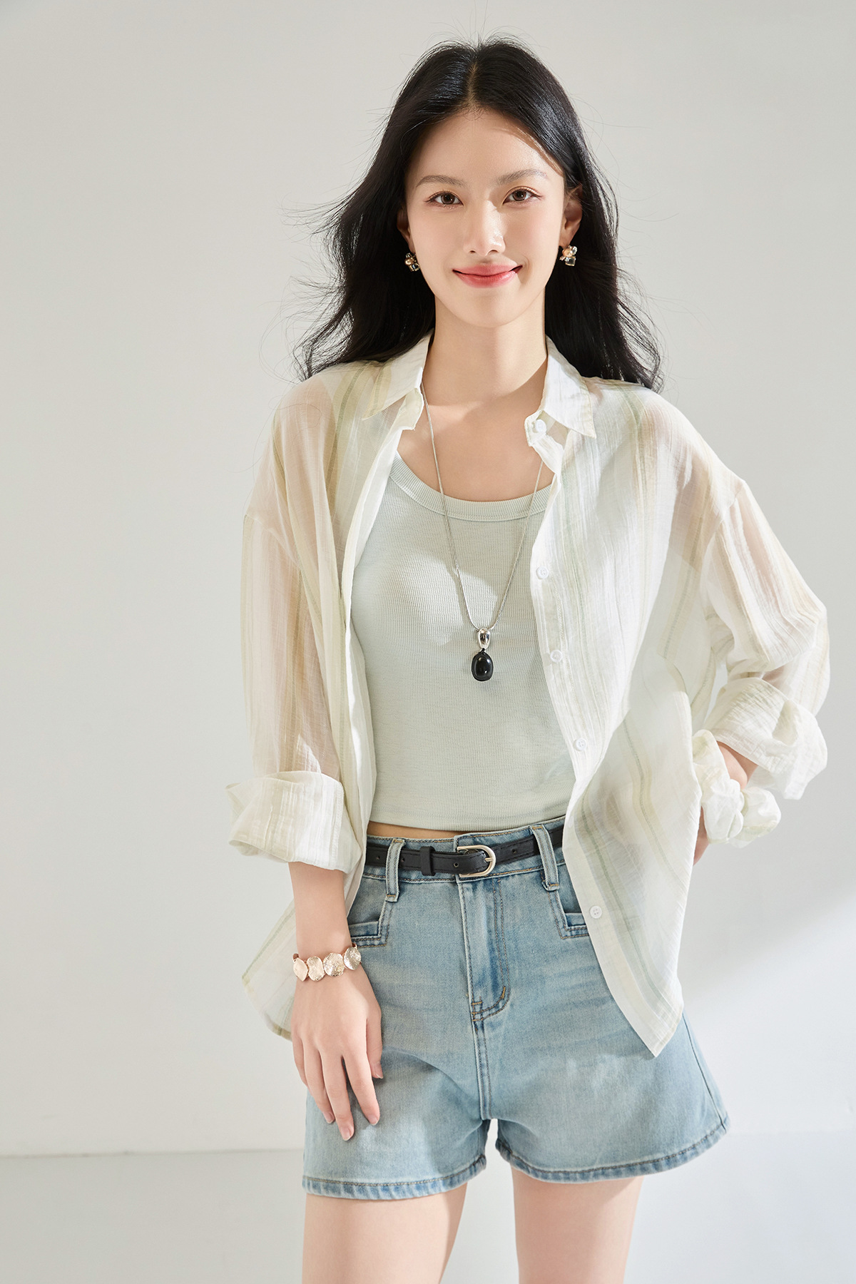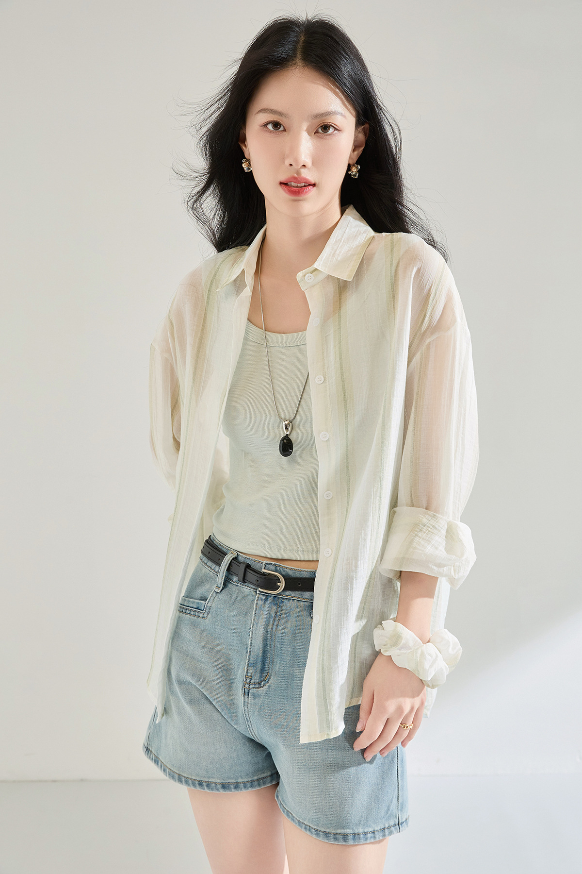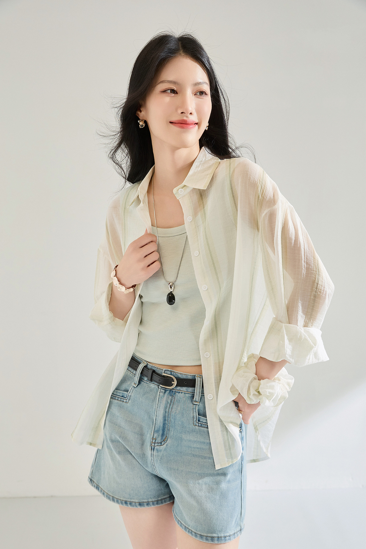 「高货sh」全新升级【铂金会员146/天猫199/差价53】(13436)洛诗琳天丝防晒条纹衬衫2025夏季宽松外搭薄款空调衫女