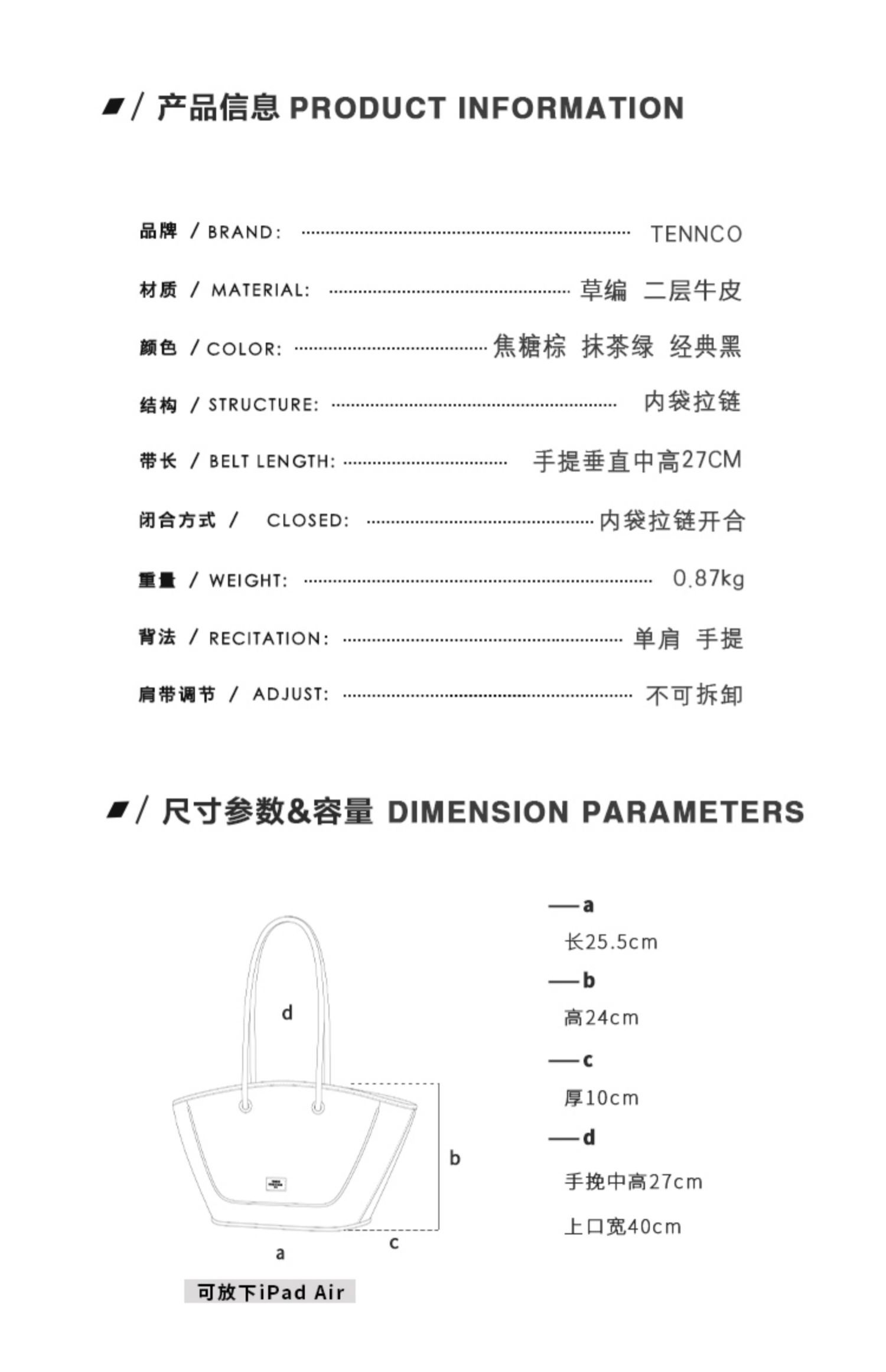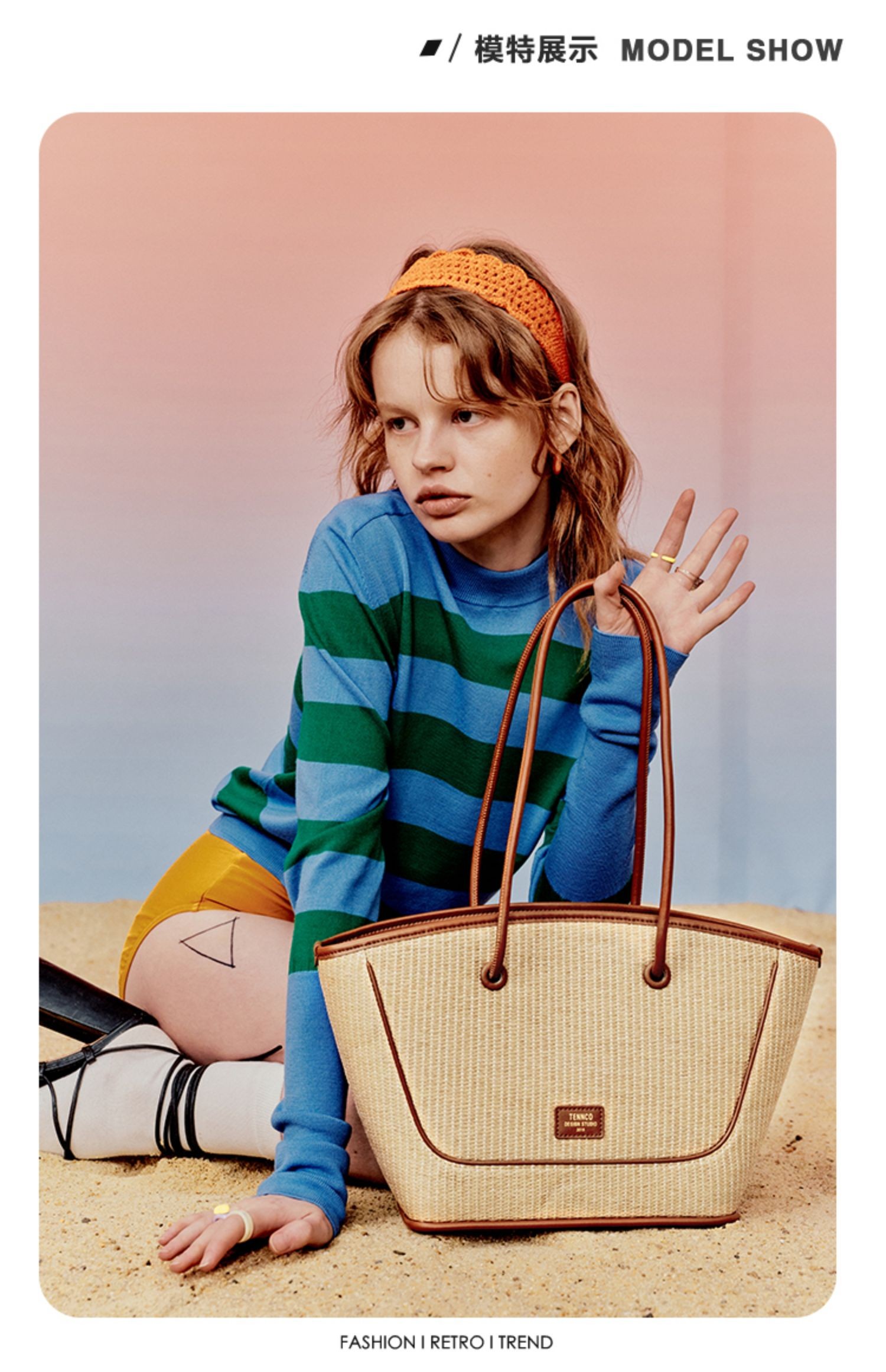 TENNCO 「菜篮子」小众设计编织托特包度假大容量草编包单肩女包
