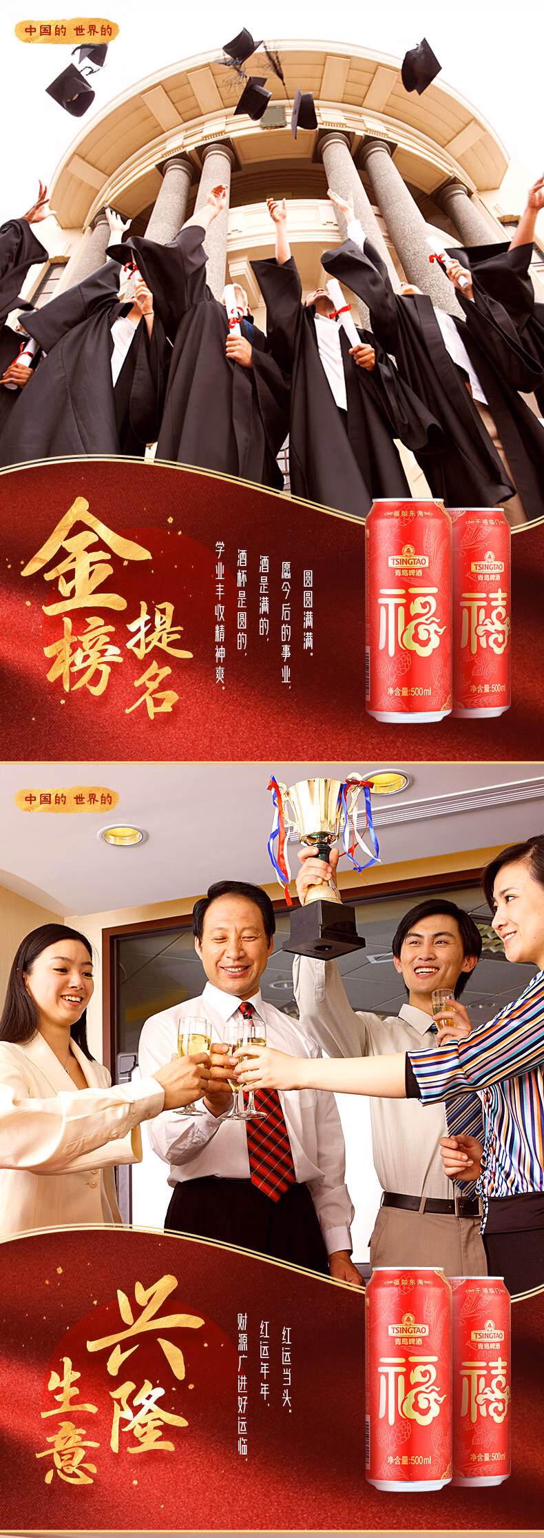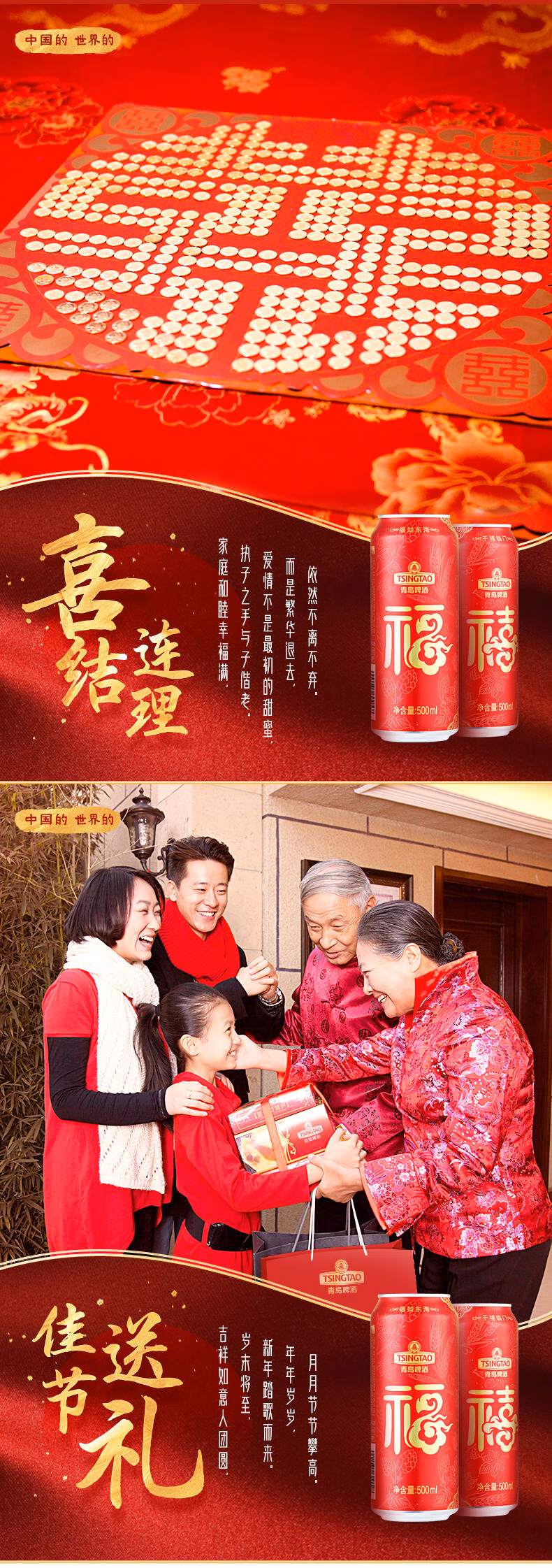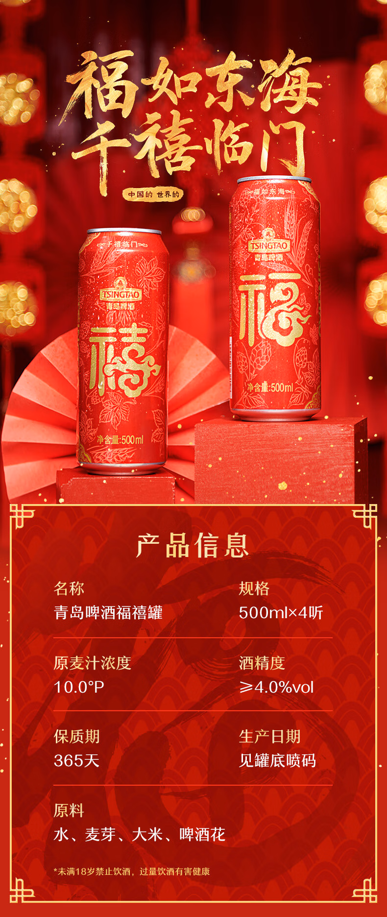 青岛啤酒(TsingTao)喜庆 福禧罐500ml*12听 整箱装