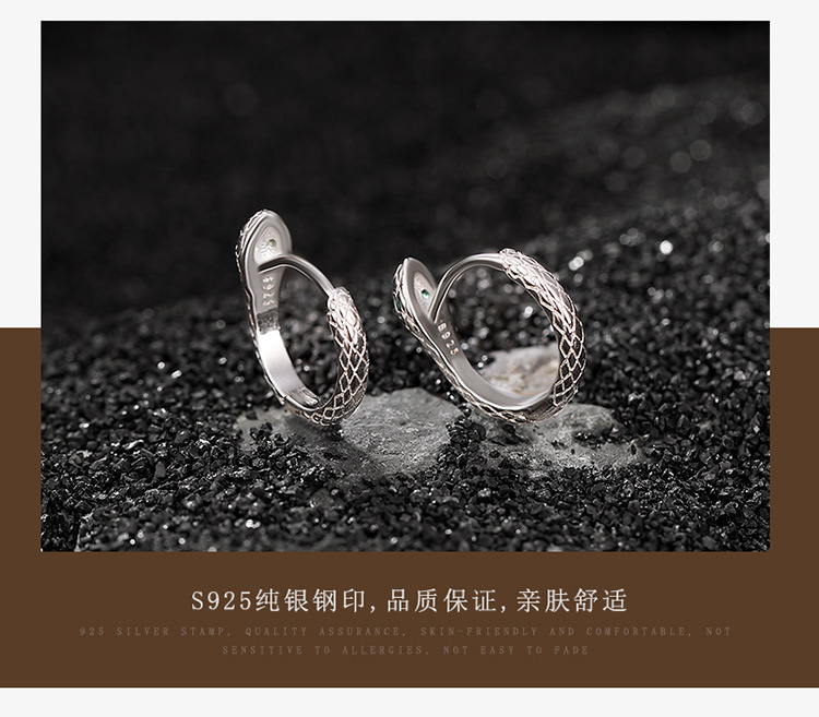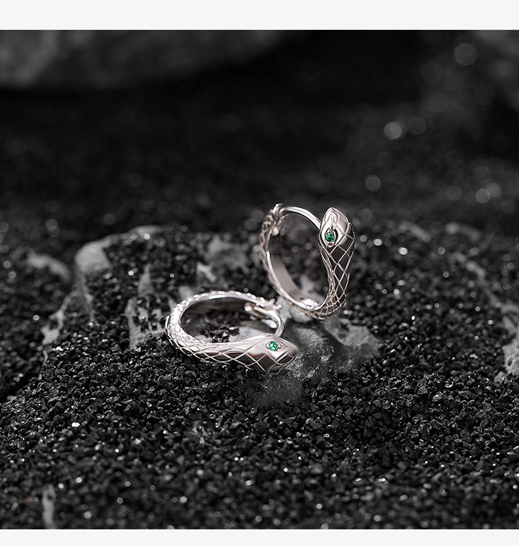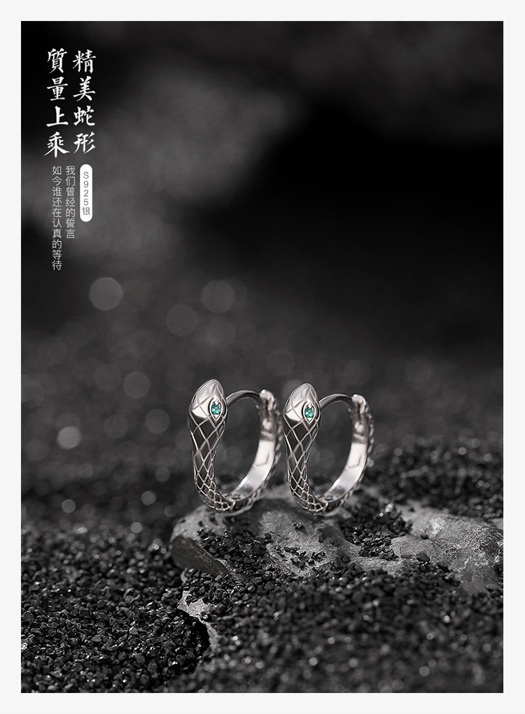 S925纯银光面精致灵蛇耳环CW