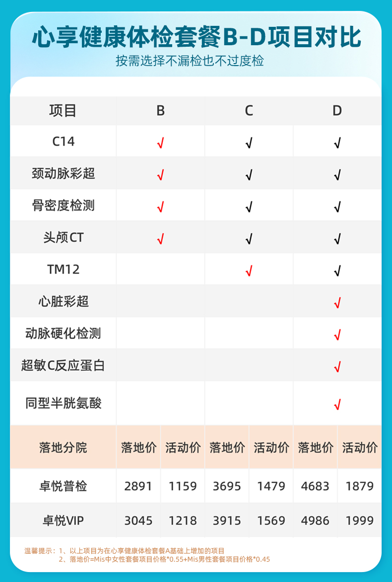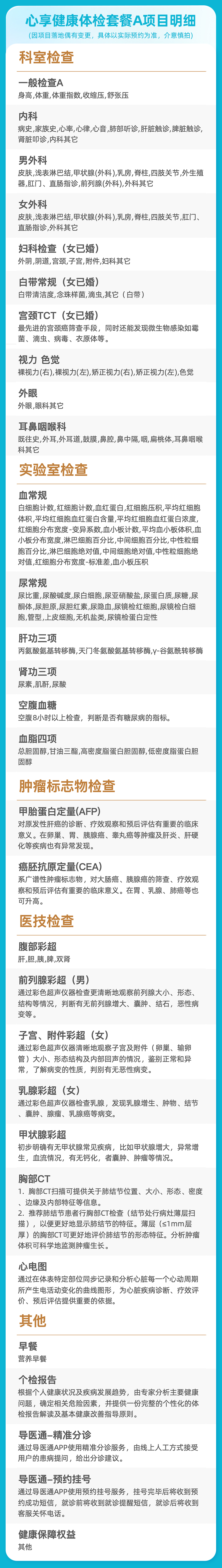 爱康卓悦 心享健康体检套餐A