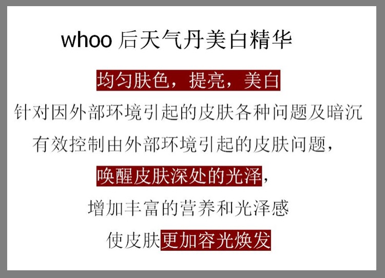【赠品小样】:花献水25ml,花献乳25ml,花献眼霜5ml,美白精华8ml