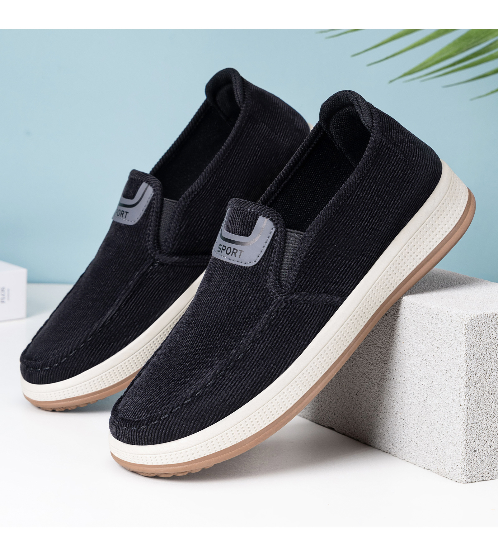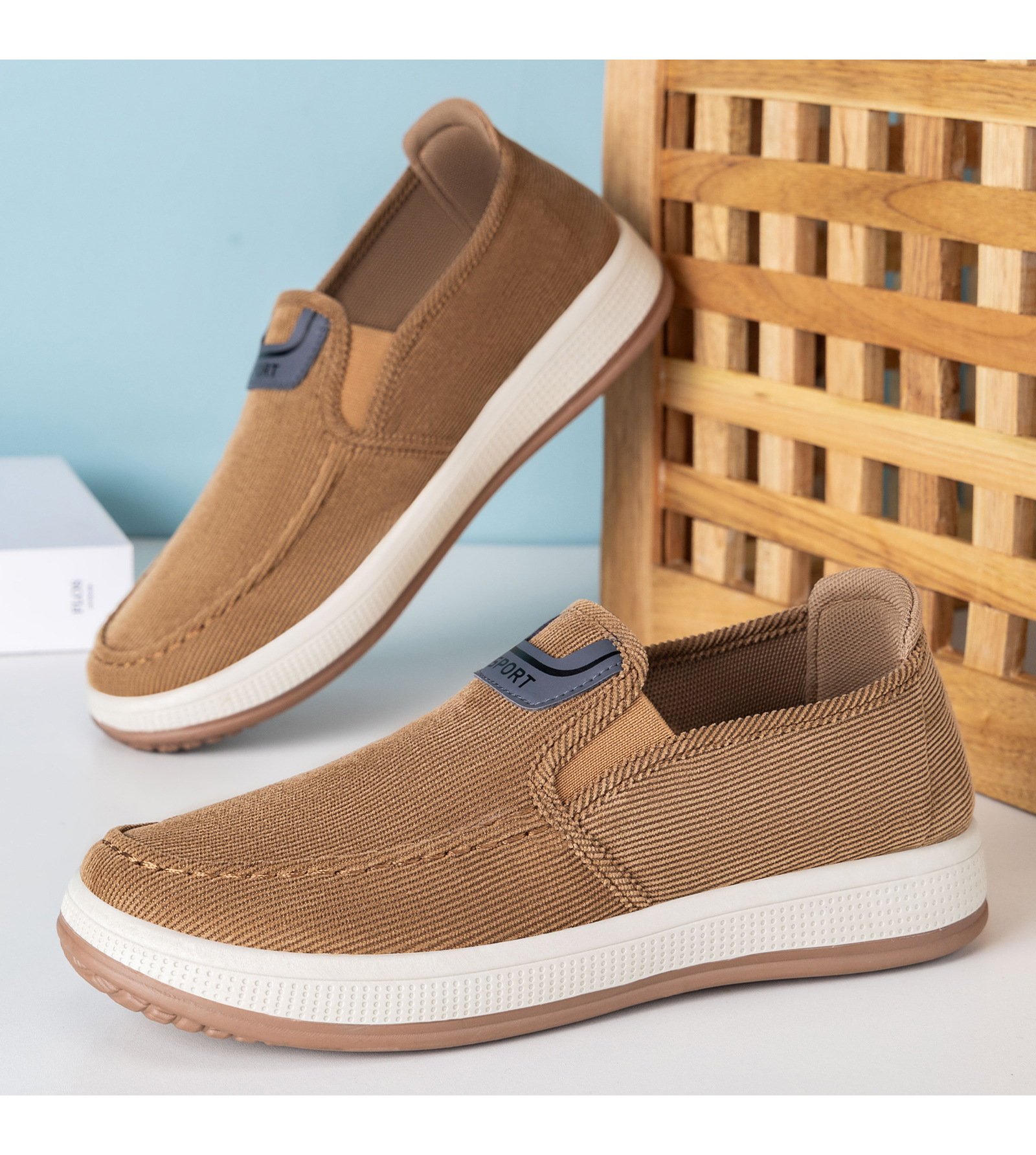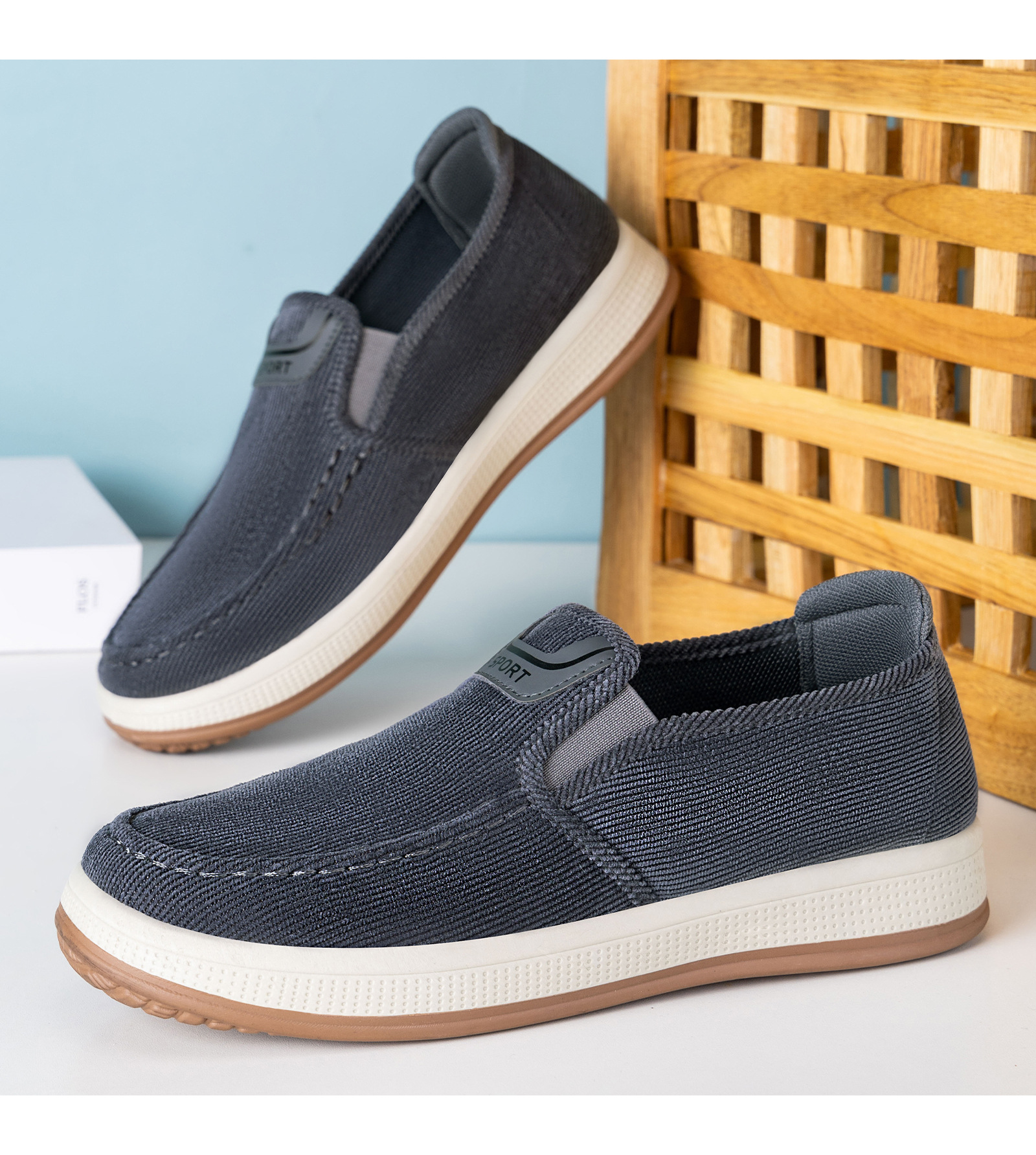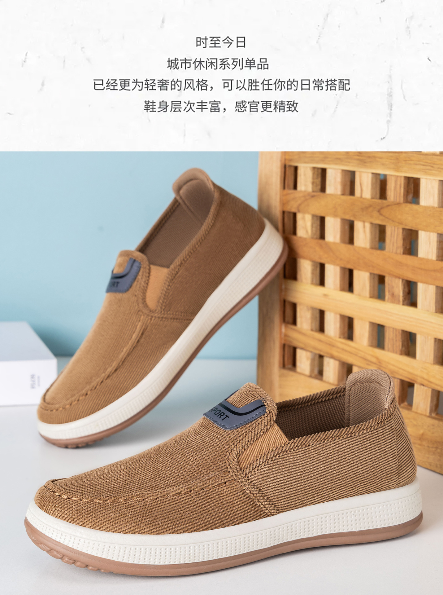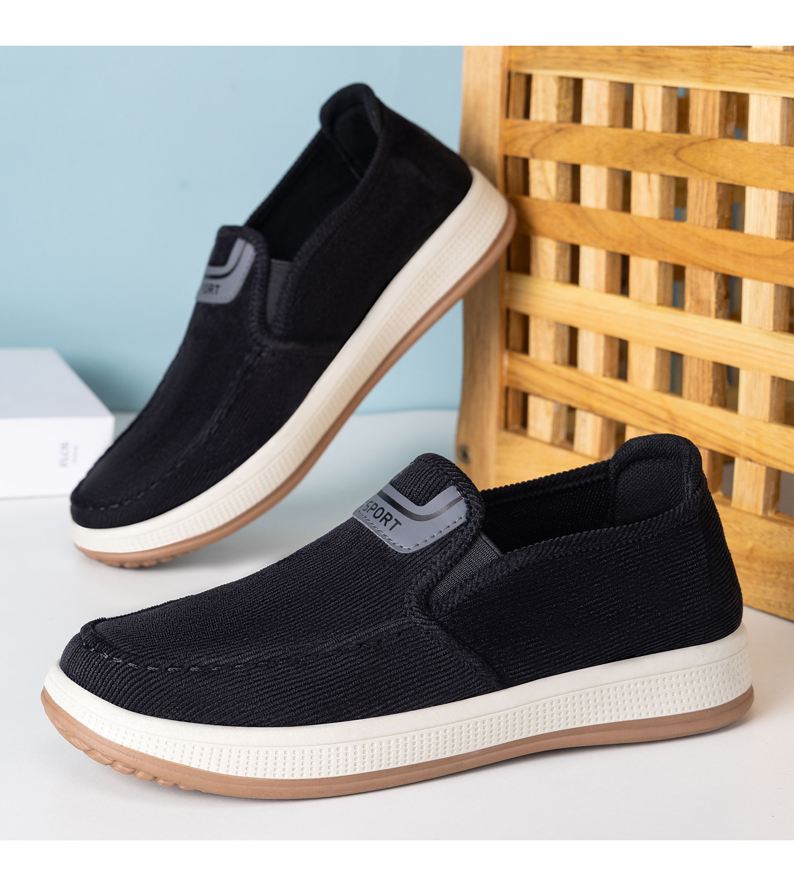 红览鞋子男鞋新款休闲鞋一脚蹬轻便浅口舒适板鞋条纹软底ALB-JY188