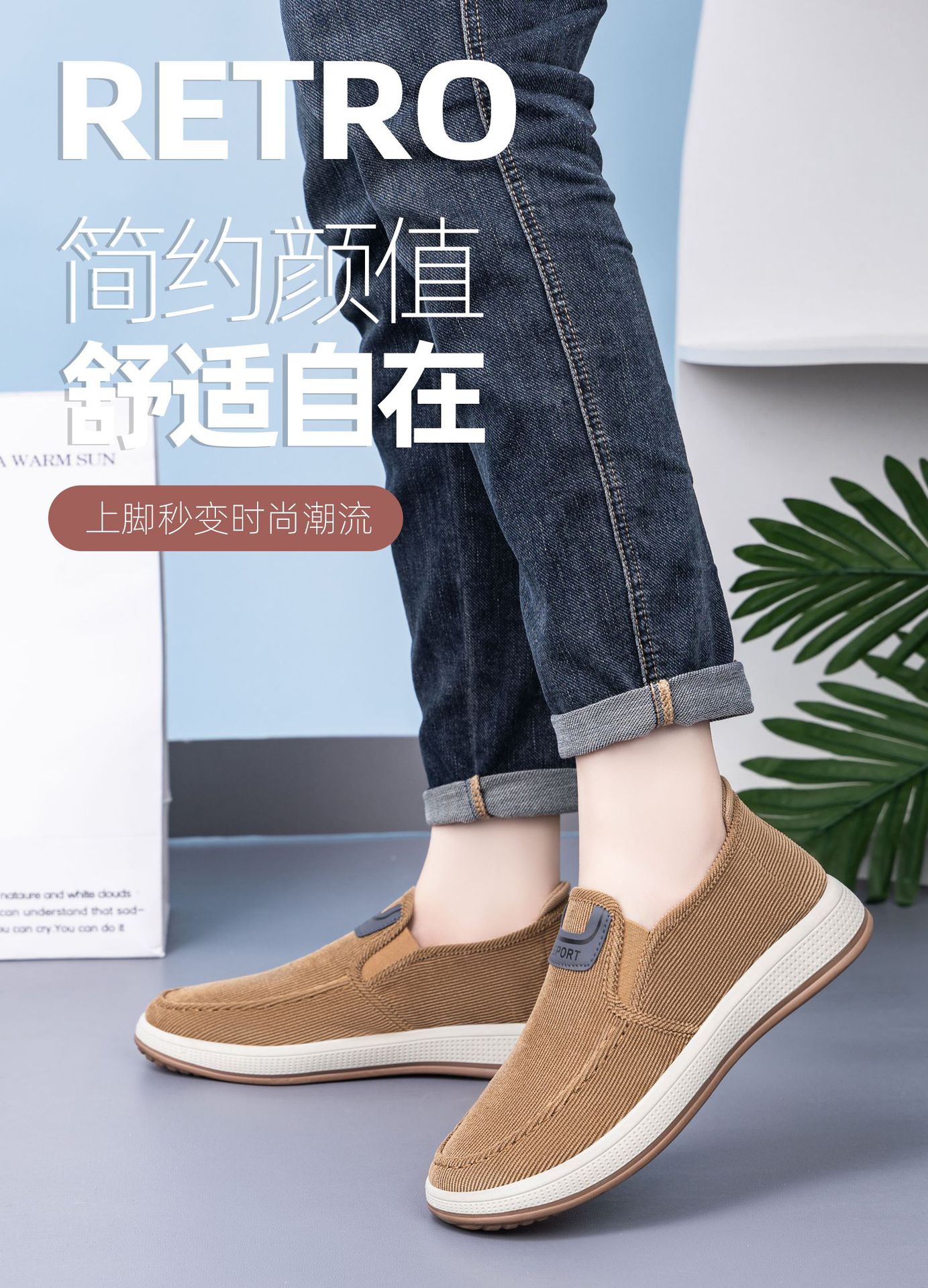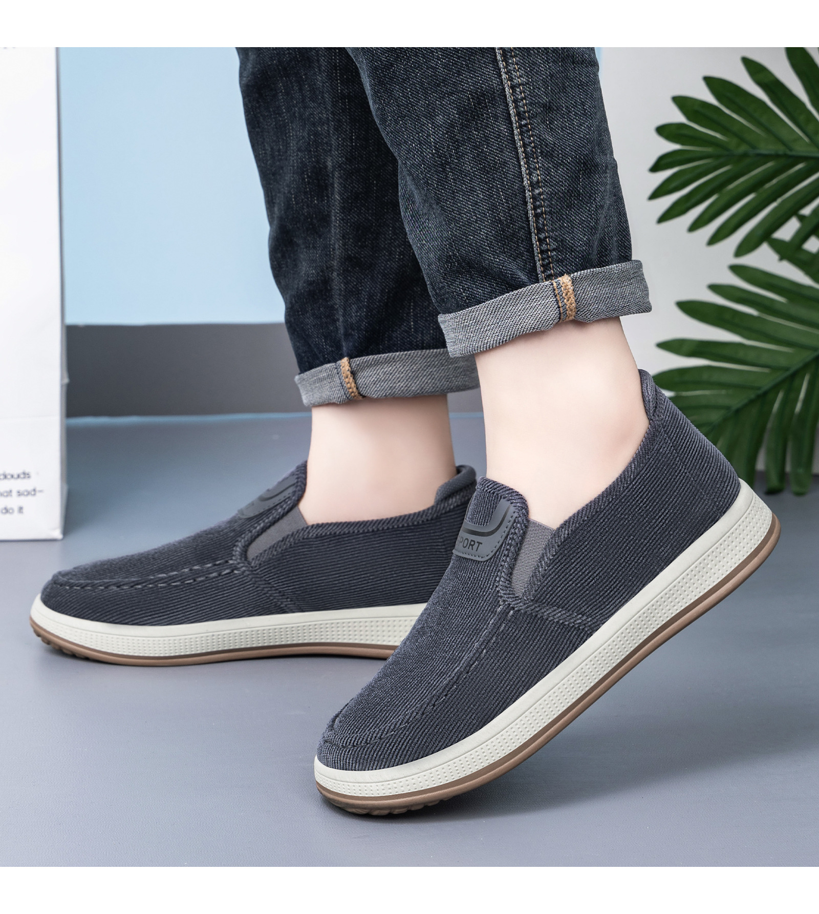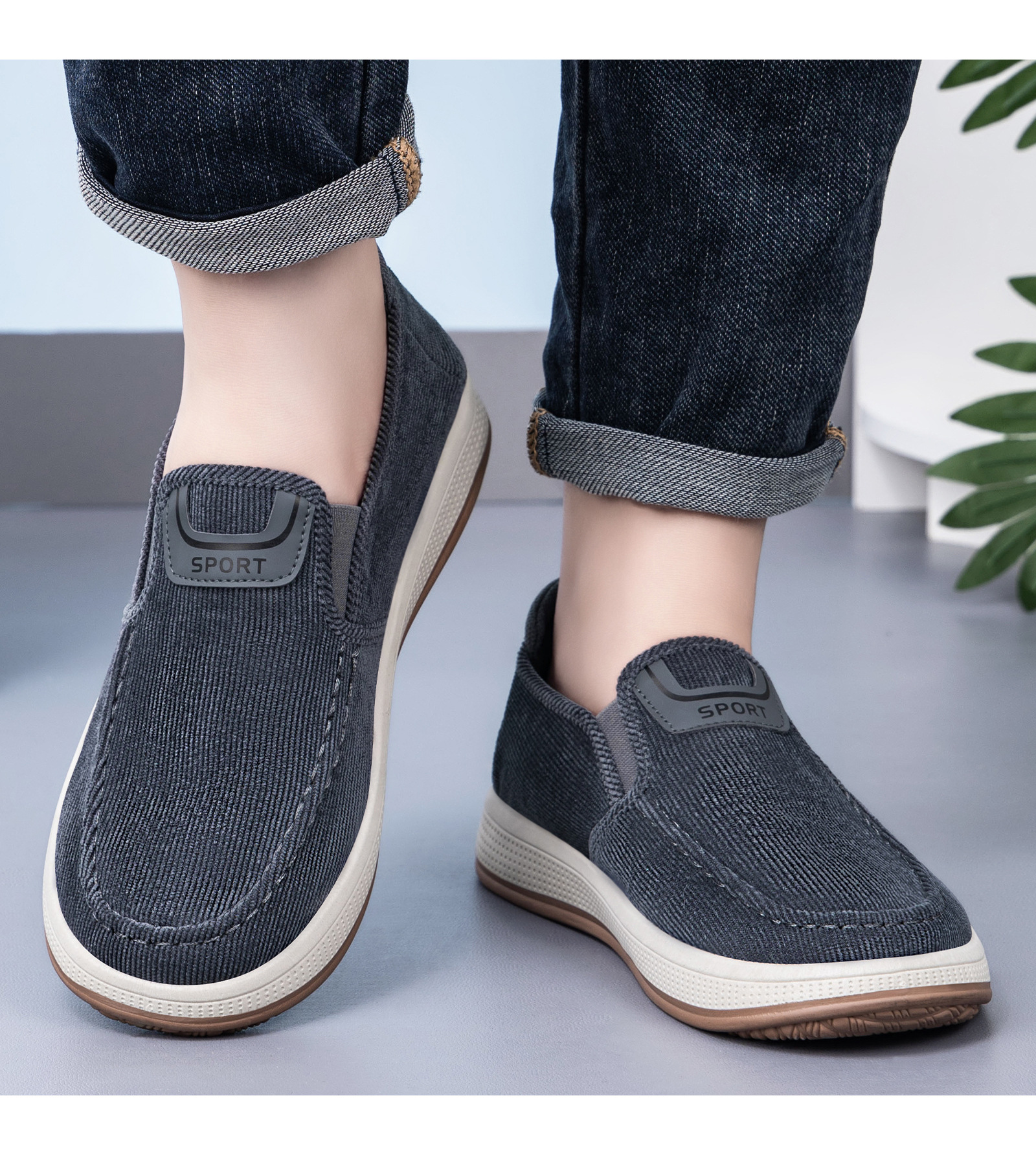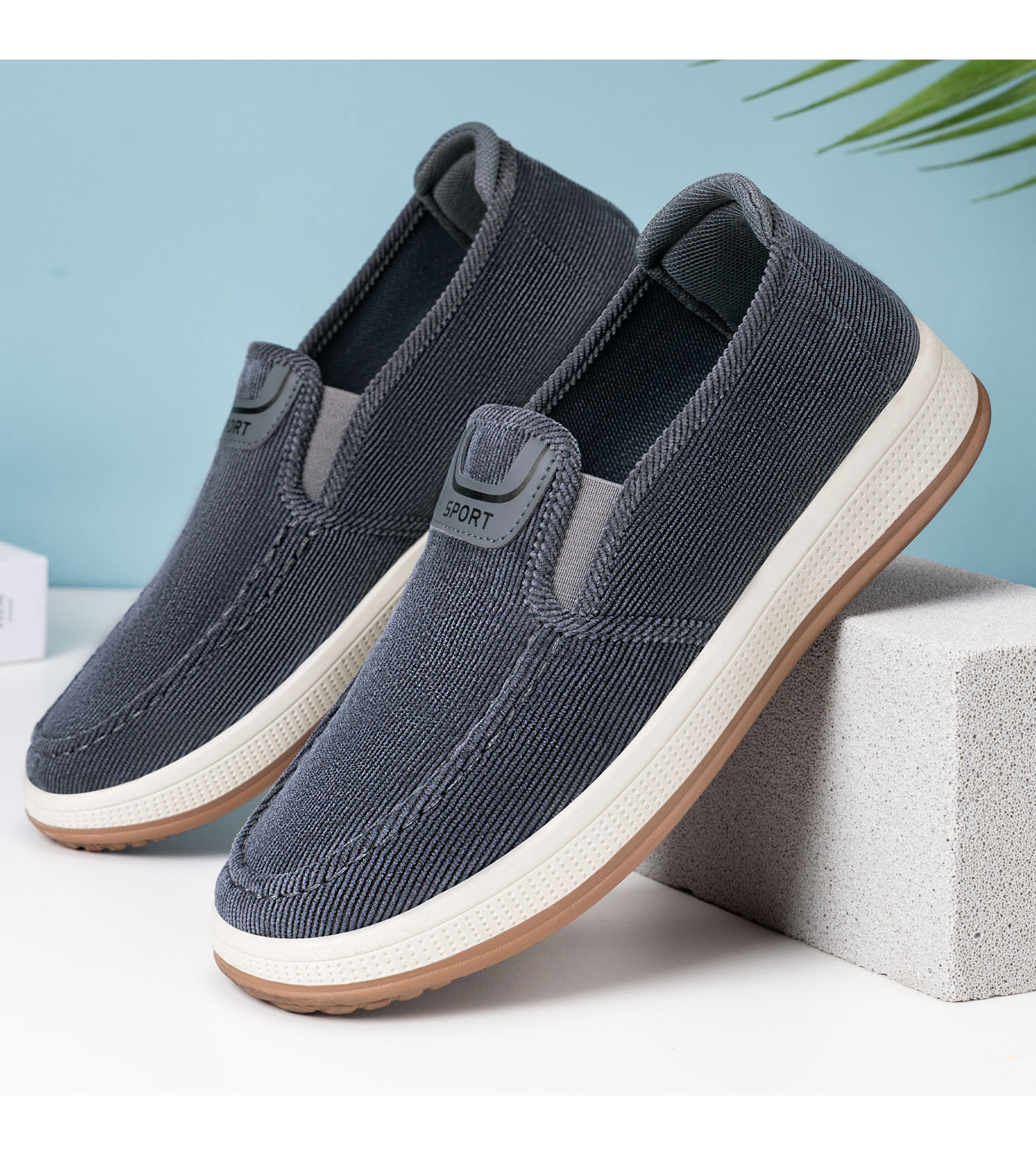 红览鞋子男鞋新款休闲鞋一脚蹬轻便浅口舒适板鞋条纹软底ALB-JY188