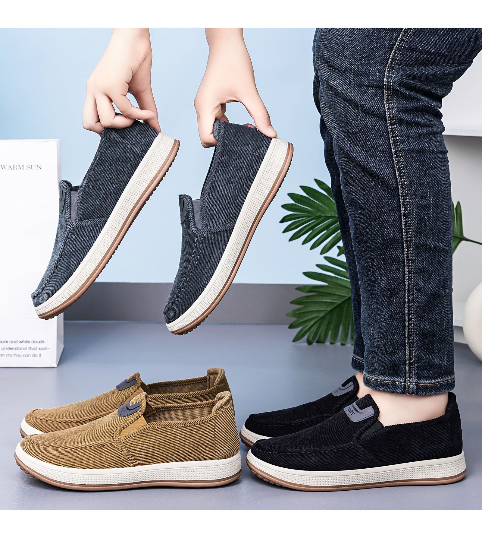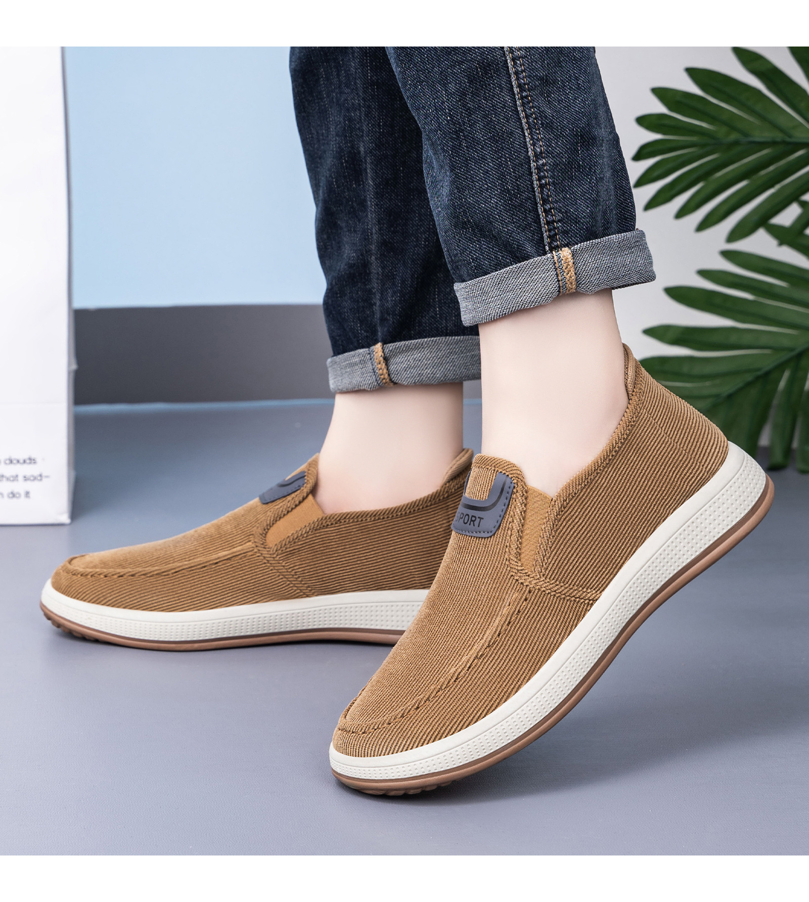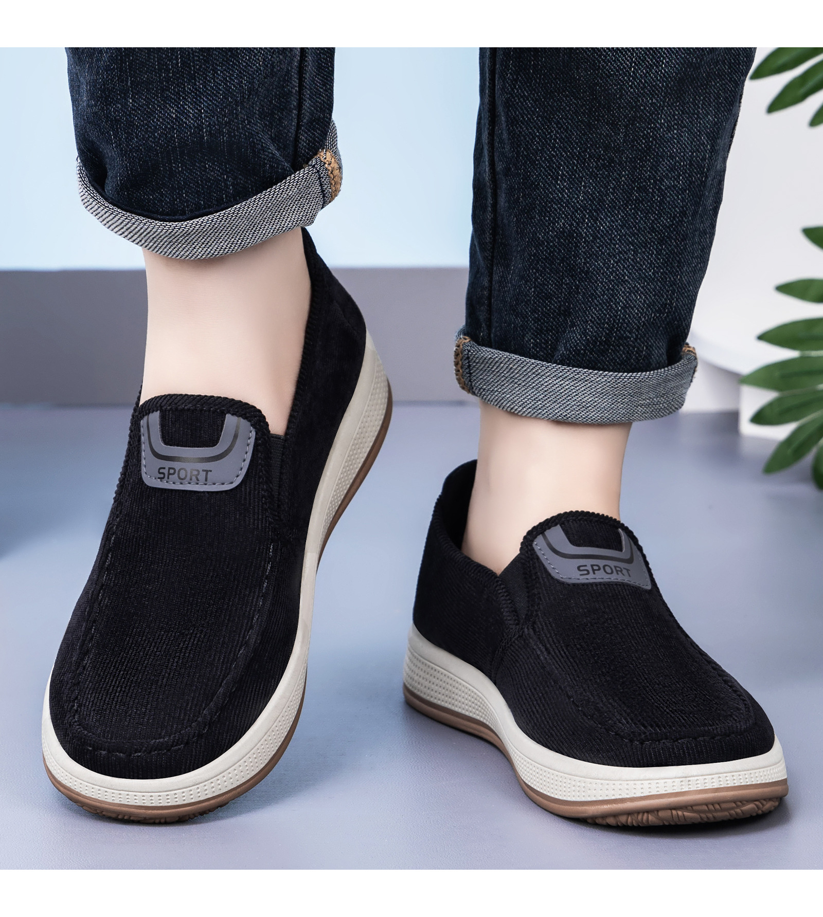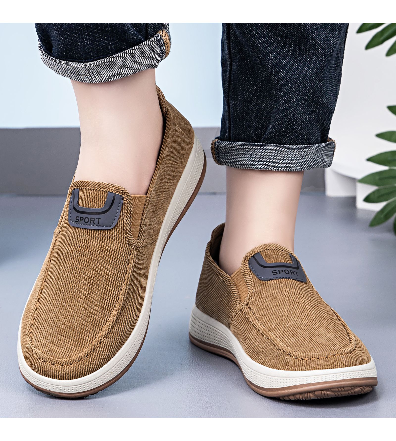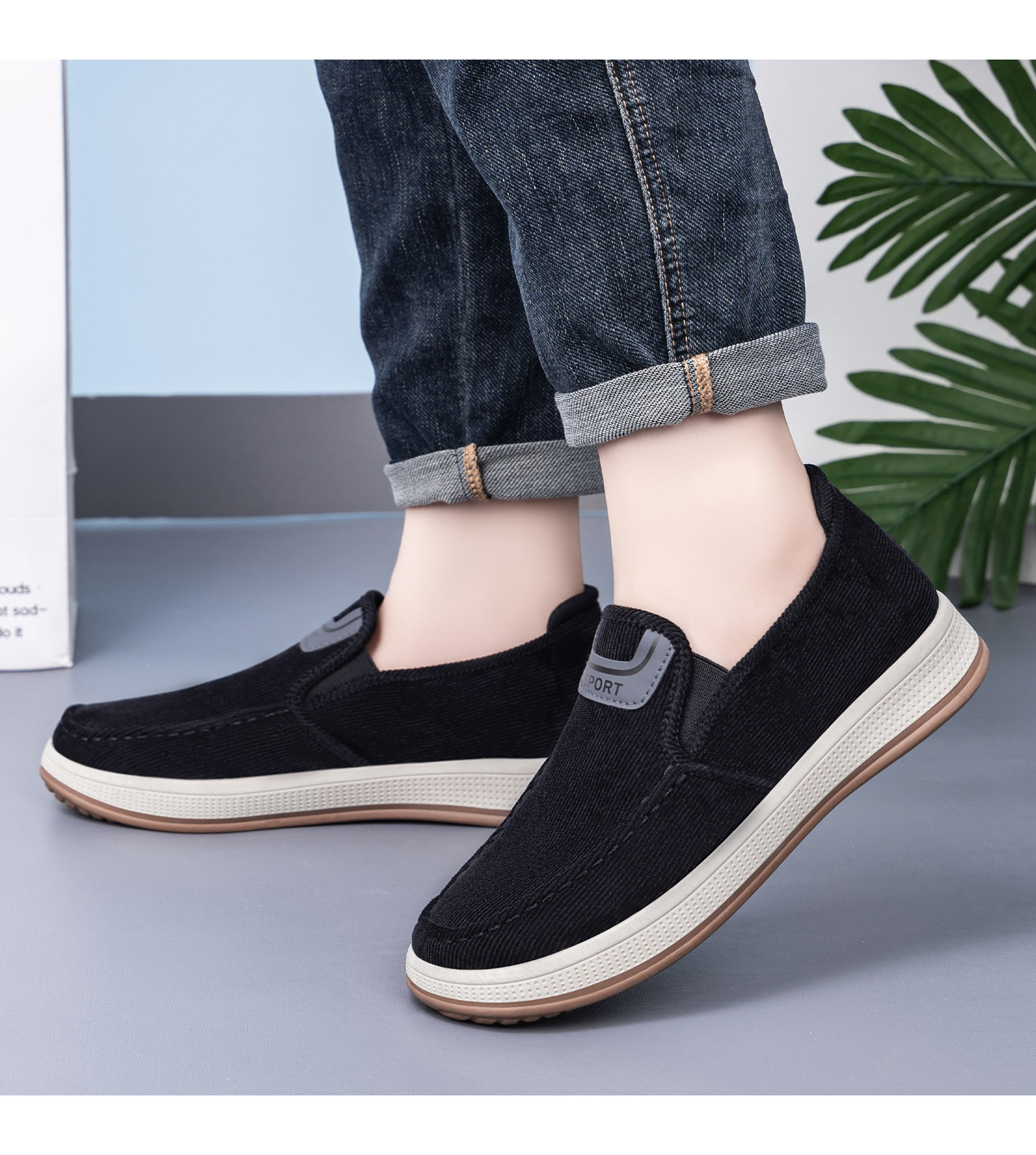红览鞋子男鞋新款休闲鞋一脚蹬轻便浅口舒适板鞋条纹软底ALB-JY188