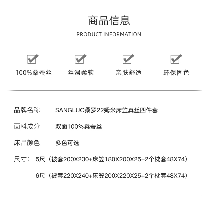SANGLUO 桑罗22姆米真丝四件套 凉感恒温零敏美肤全桑蚕丝床上用品【本商品不支持使用优惠券】