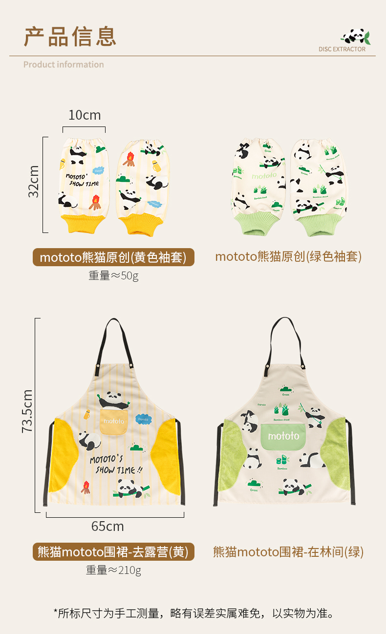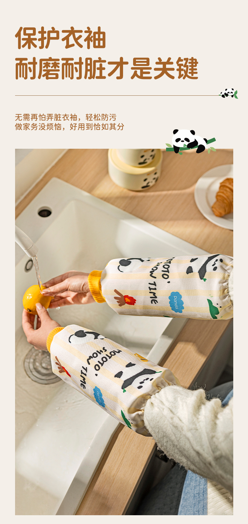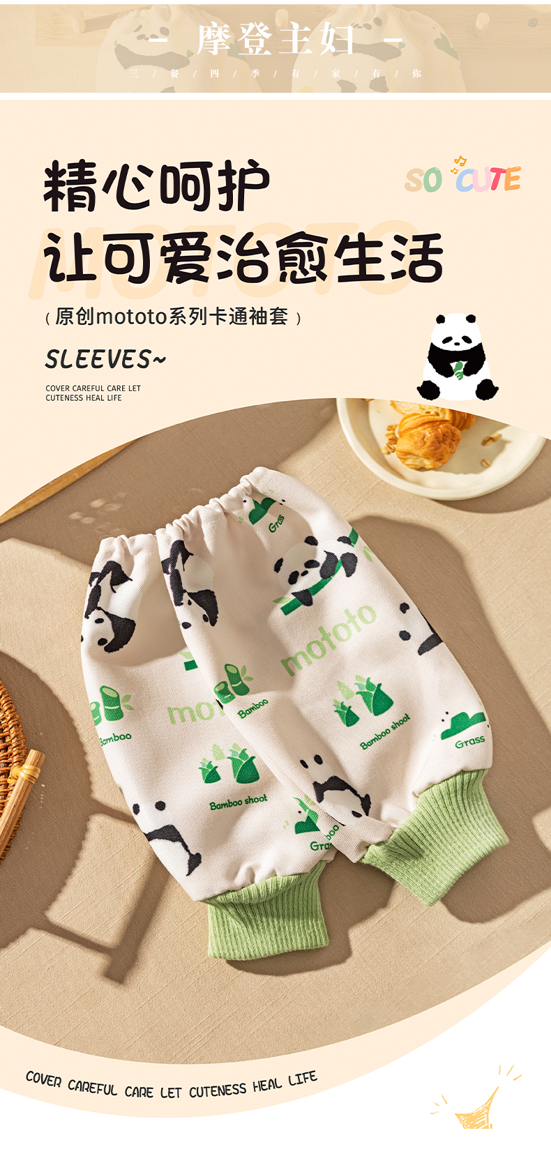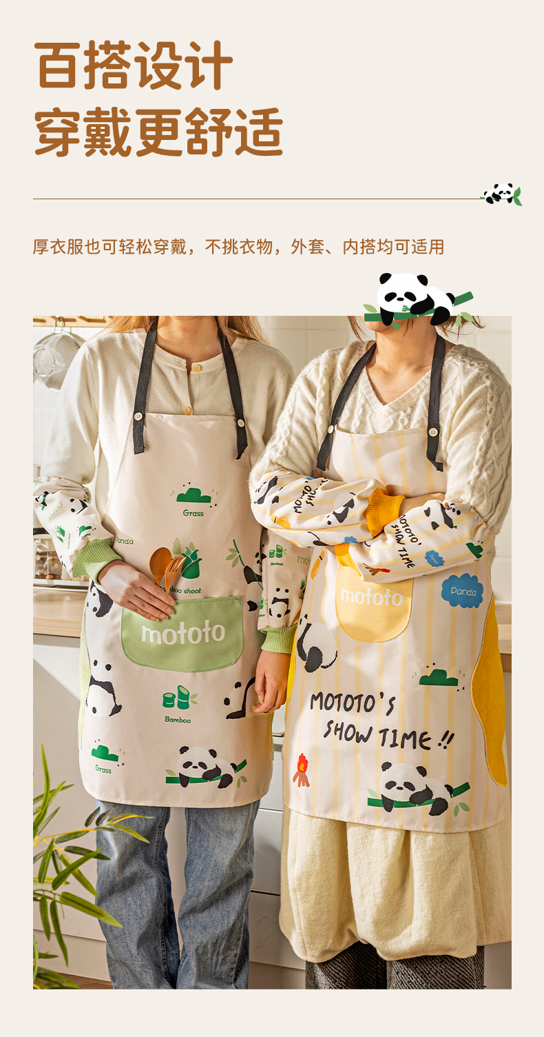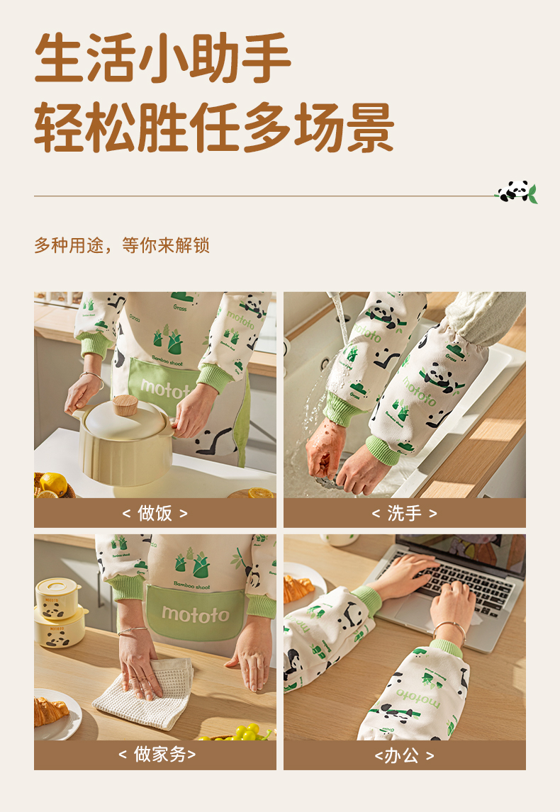 摩登主妇mototo熊猫袖套厨房做饭专用2024年新款防水防油防污套袖