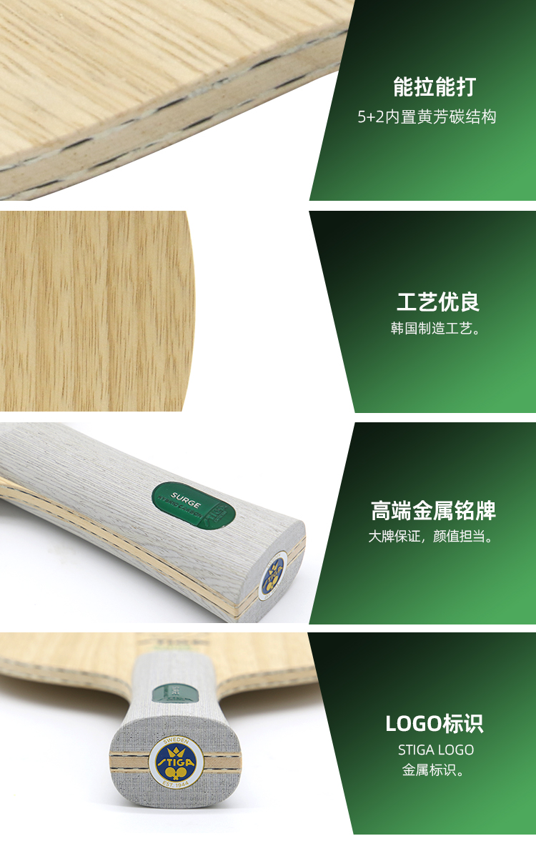 Stiga斯帝卡斯蒂卡涌动混碳乒乓底板5+2内置黄芳碳碳素乒乓球拍底板
