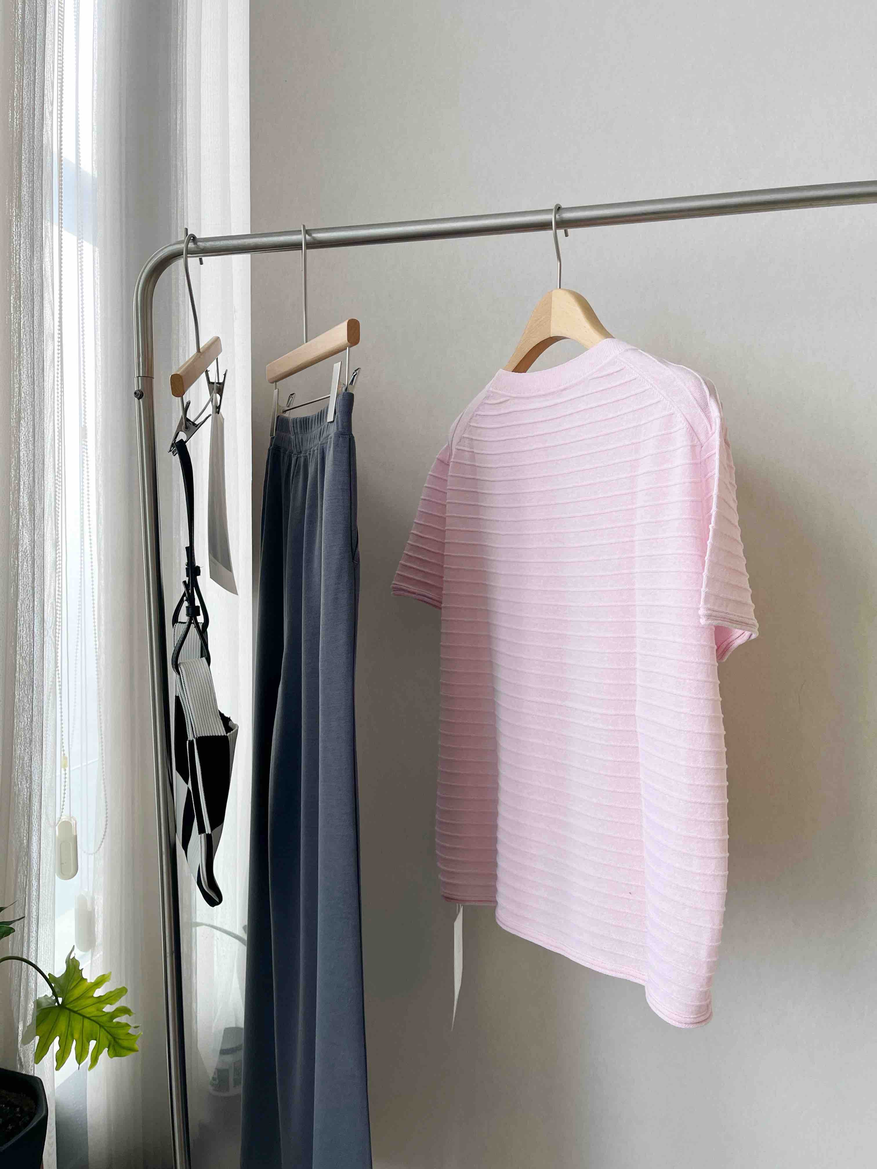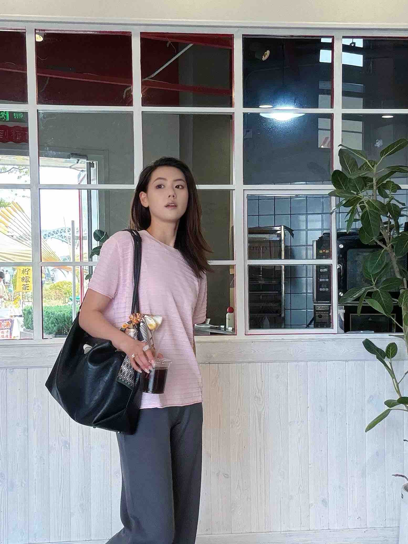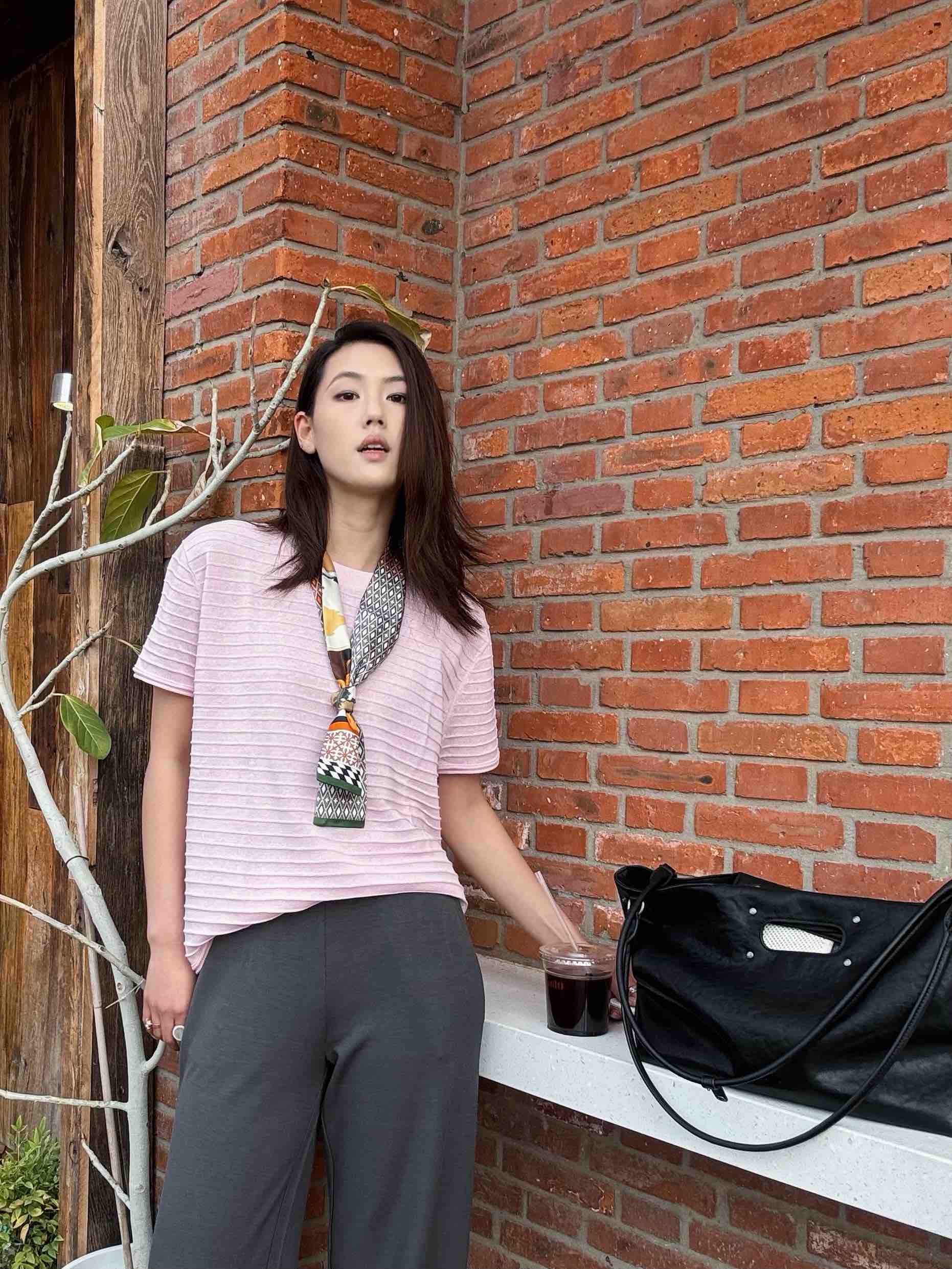 略宽松的落肩剪裁,包容身形又随性松弛,