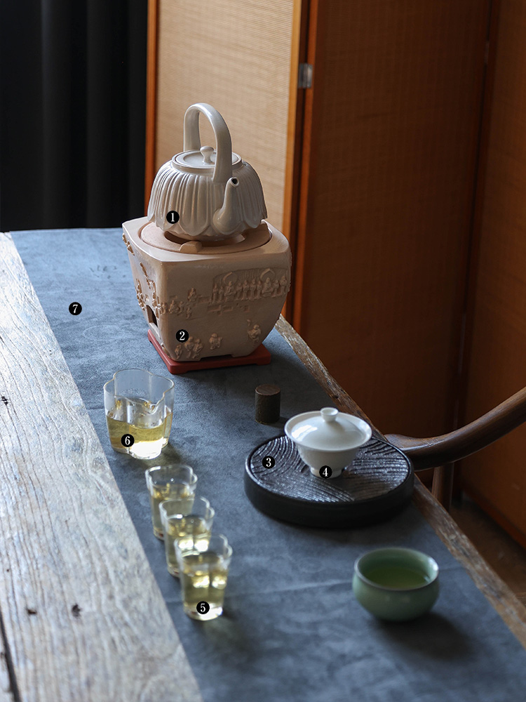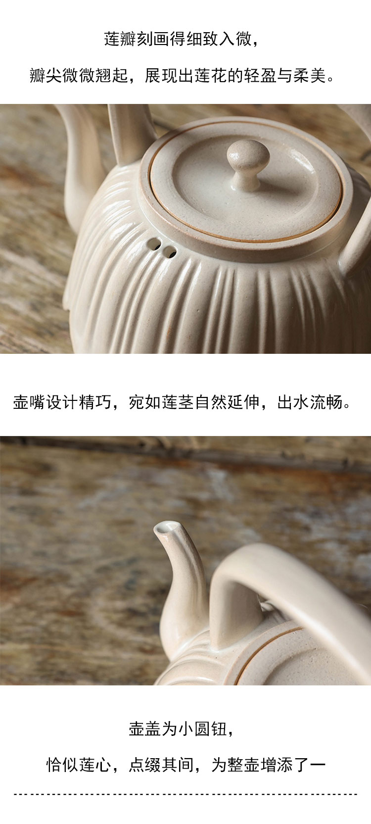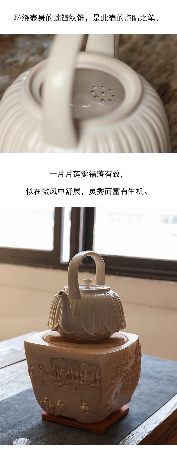 茶香记 景德镇900ml李现锋白釉莲瓣煮水壶陶瓷刻绘泡茶壶素雅茶具