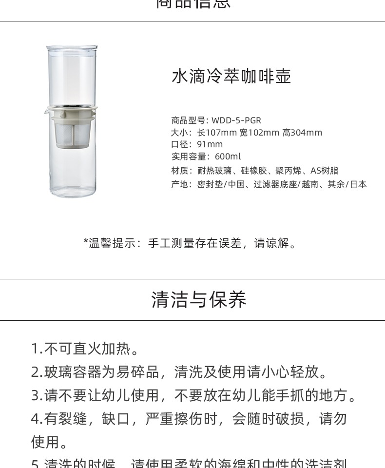 【HARIO】日式耐热玻璃水滴冷萃咖啡冷萃茶壶冰滴壶WDD-5