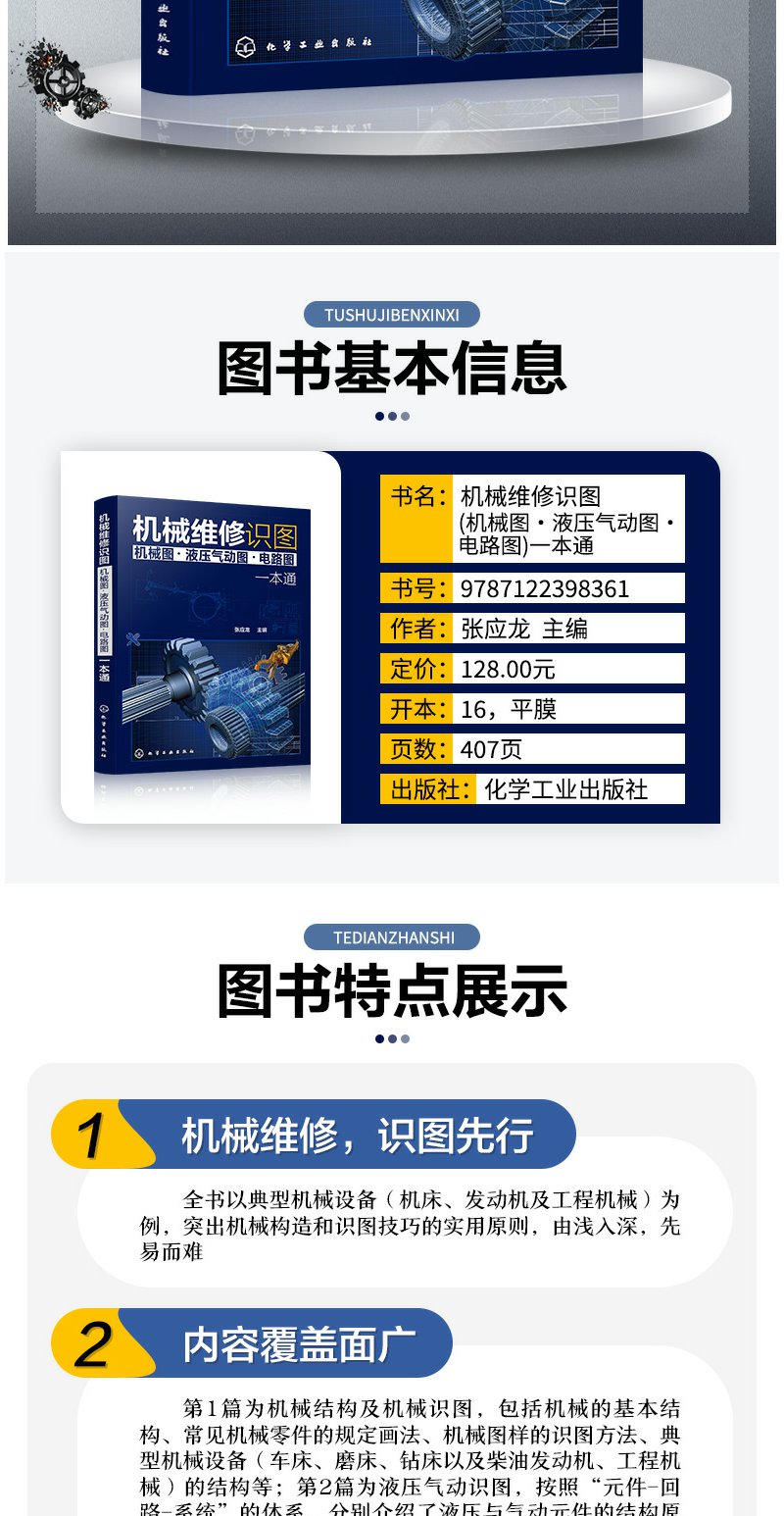 械维修识图 械图 液压气动图 电路图 一本通 械结构与械识图液压与气动识图电气原理与电路识图从入门到精通 械构造书籍 化学工业出版社 9787122398369