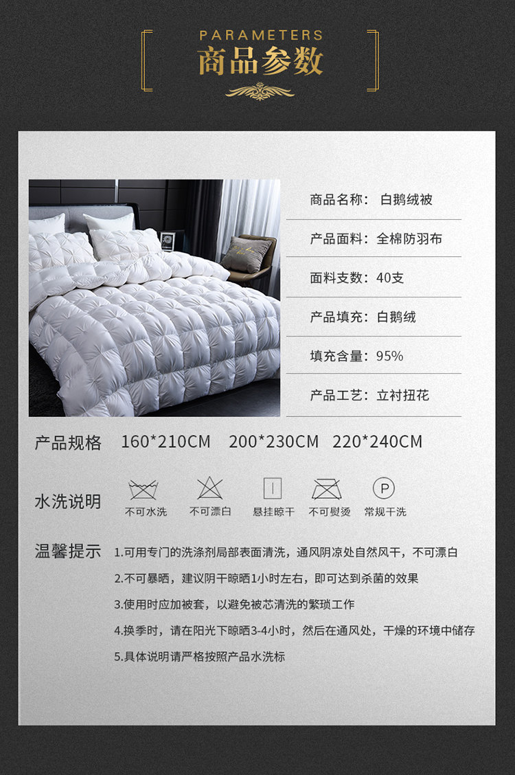 KMFZ022新款高端优雅气质加厚保暖白鹅绒羽绒被