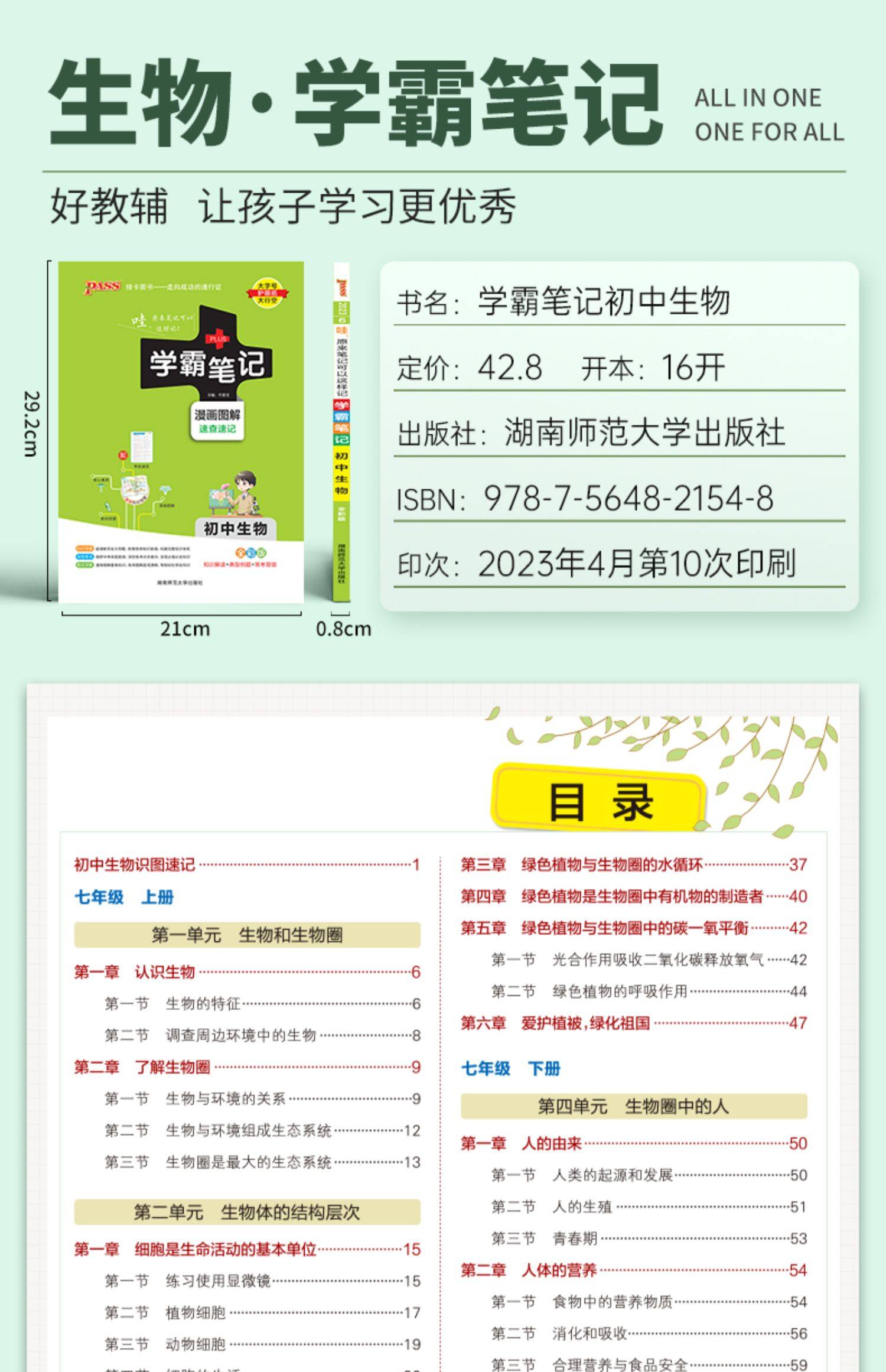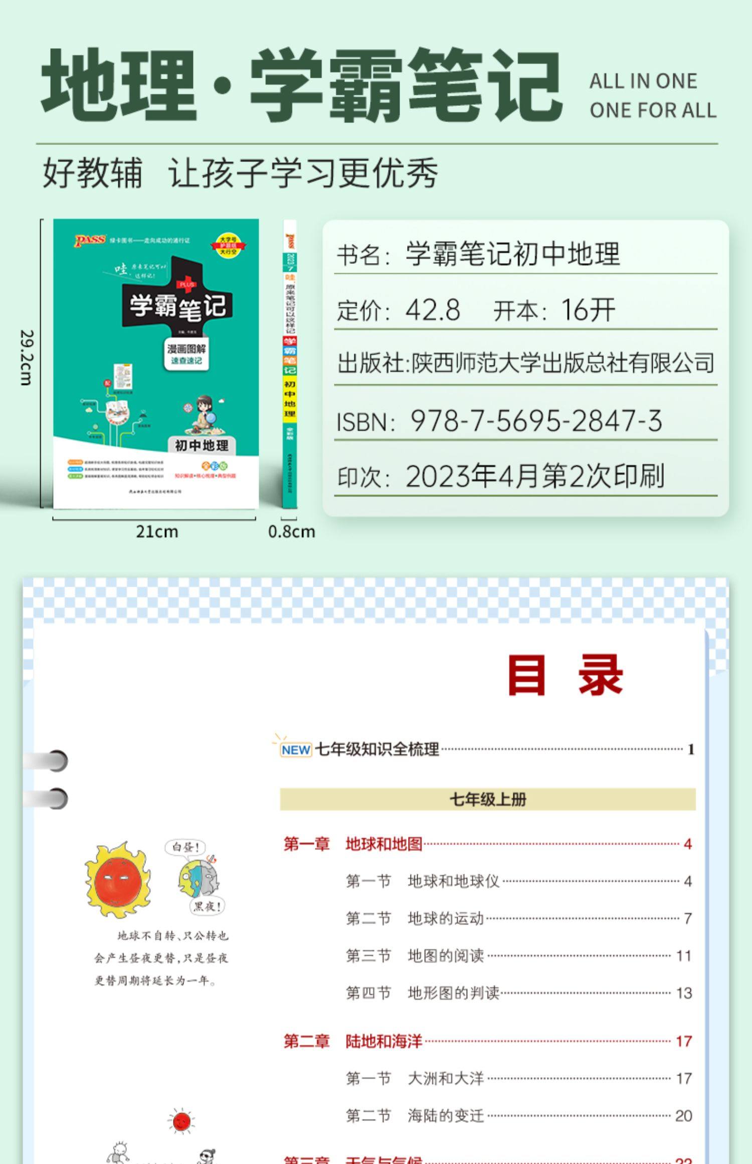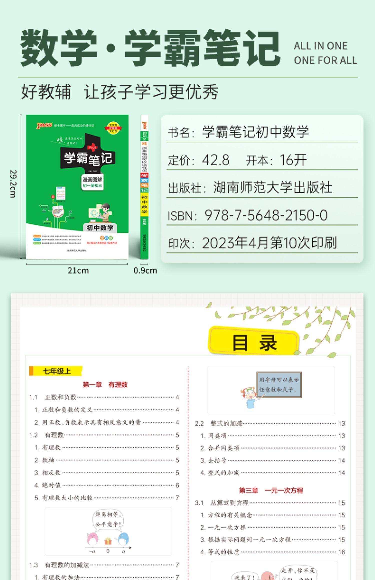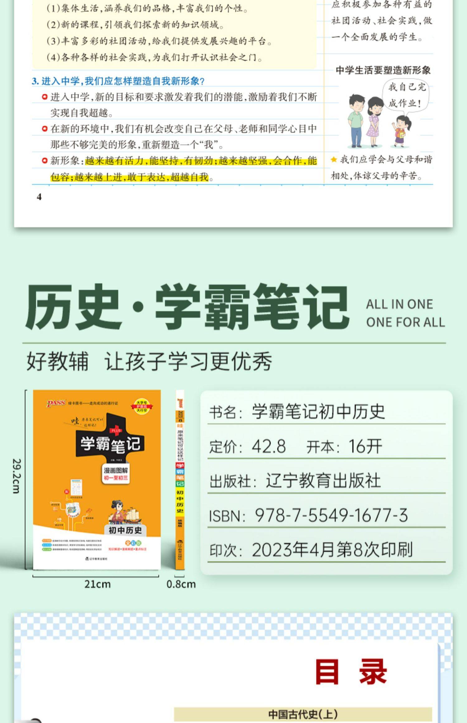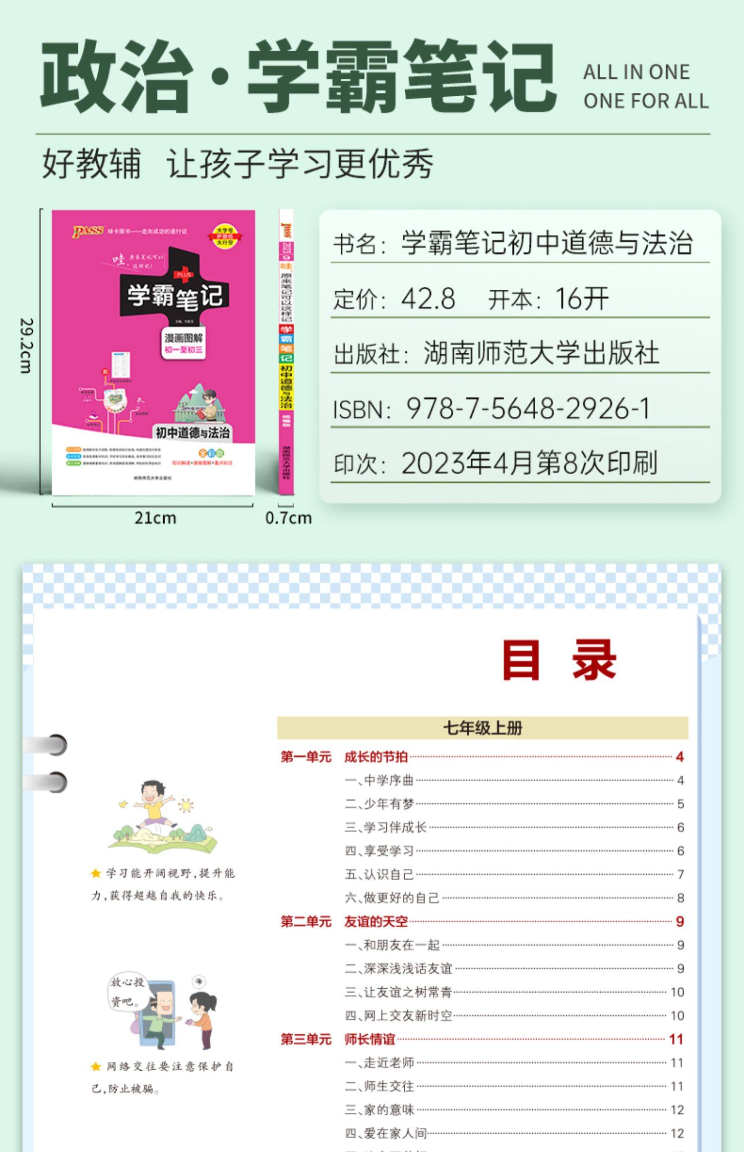 2025版PASS学霸笔记初中全套11本语文数学英语物理化学生物地理道德与法治历史初一初二初三七八九年级三年通用版人教版复习教辅书